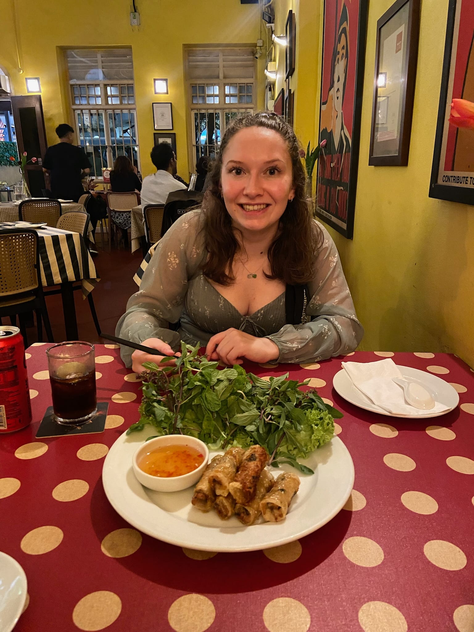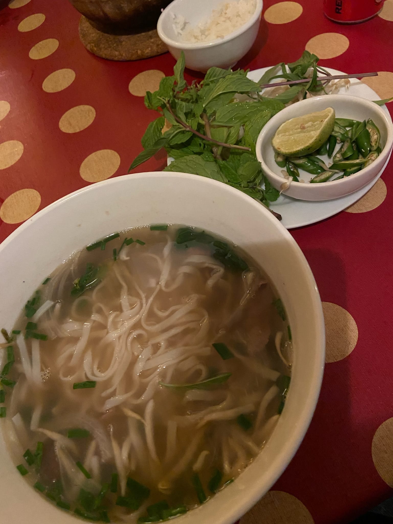 Sao Nam, 'Michelin Guide' Vietnamese restaurant - chicken nems (spring roll), beef pho, caramel chicken and rice (ate too fast to take a photo) and 2 drinks = 120 RM (~£20)
