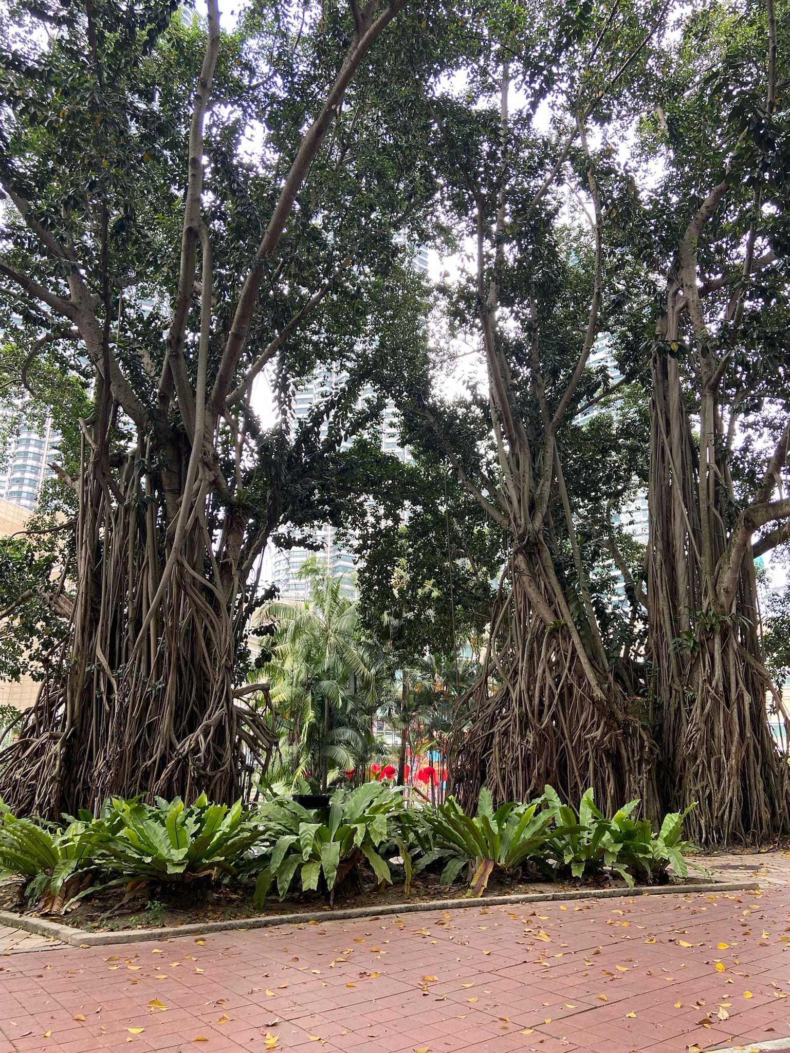 KLCC park which reminded us of Central Park. The 'rubber' trees' arial roots were very cool to see