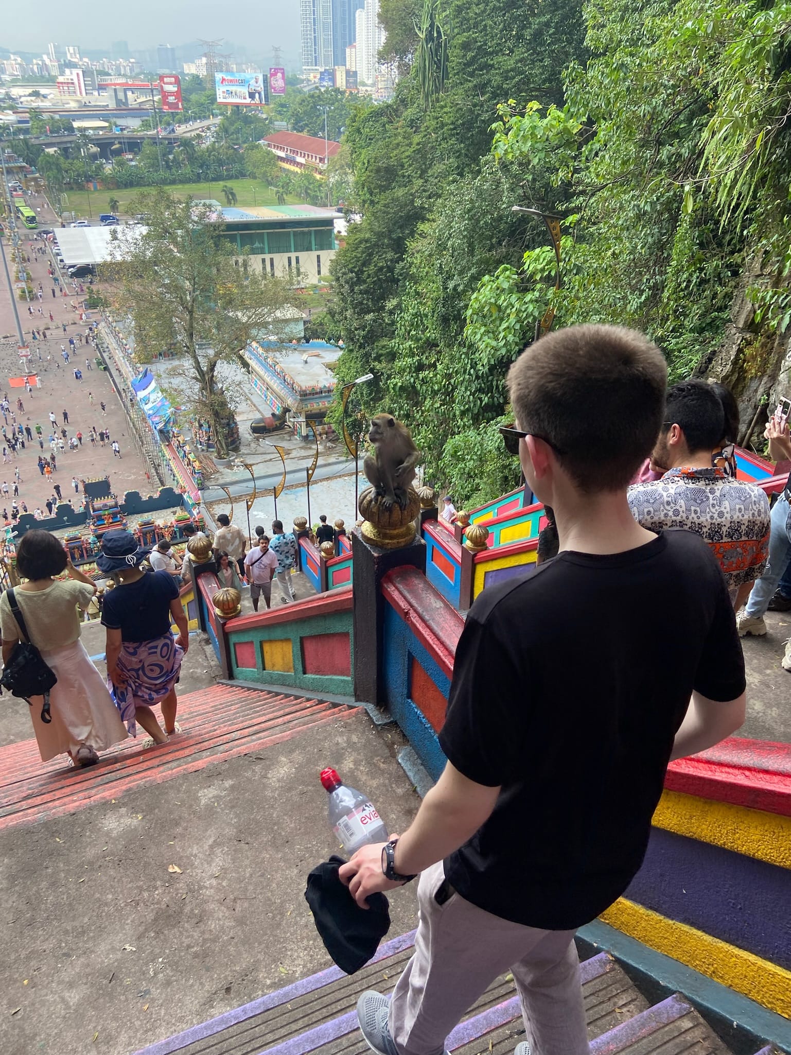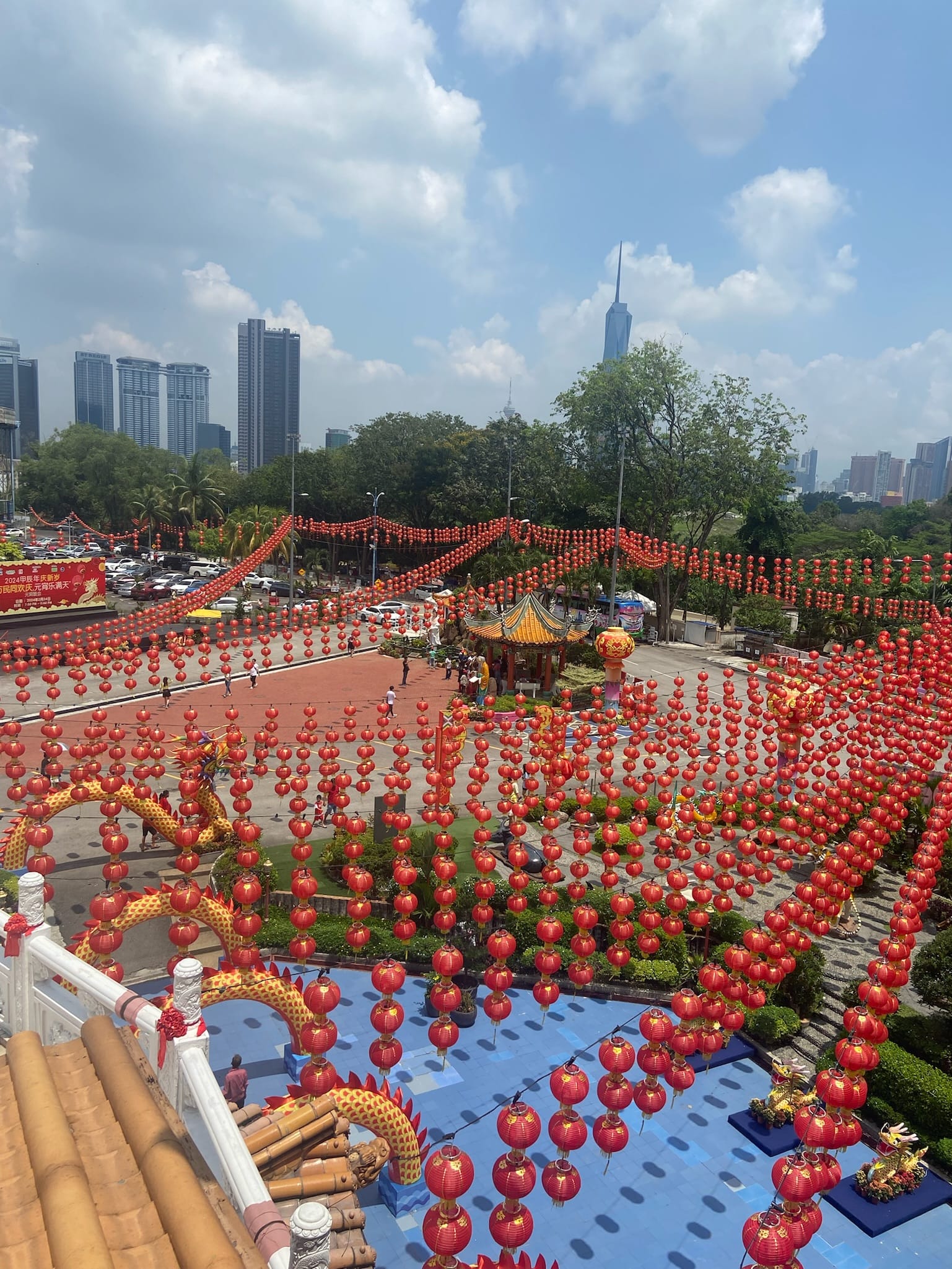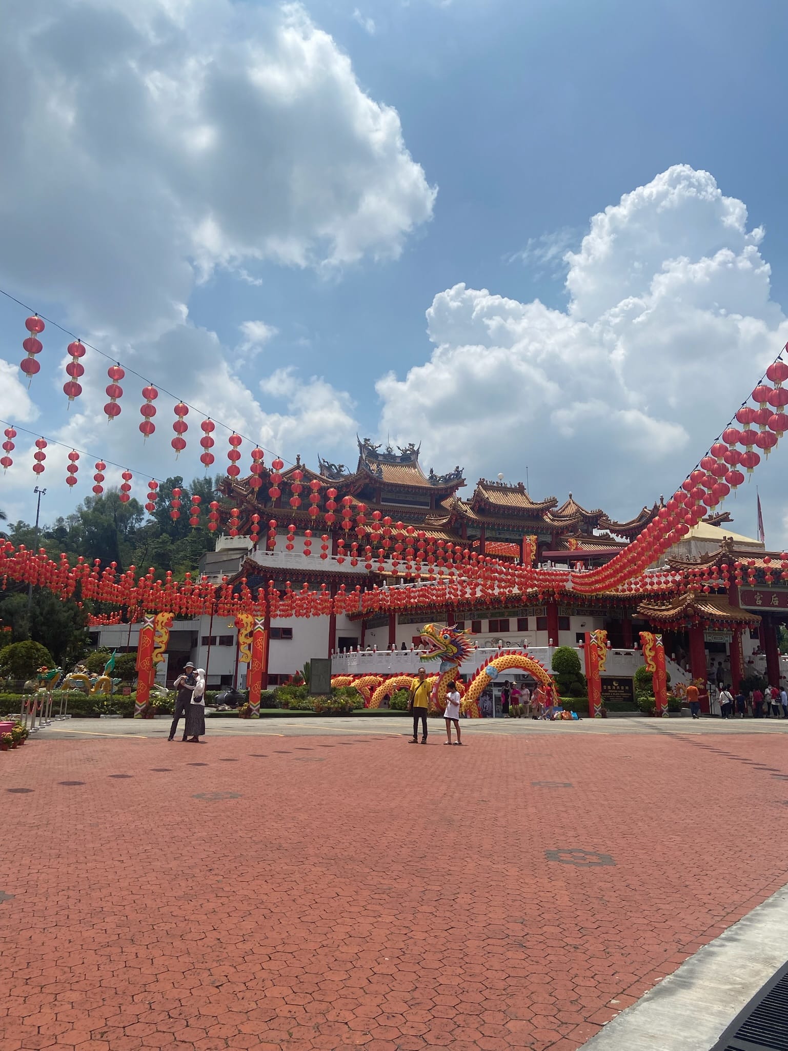 Today we were up and out by 7am so we could reach the Batu Caves before the crowds. After some interesting (incorrect) train timetables and a McDonalds Nasi Lemak, we arrived to a beautiful temple and a lot of pigeons and monkeys. We felt extremely lucky to be finally here after seeing so many photos, and it really lived up to the hype! After a few hours, we got a train and Grab (taxi) to Thean Hou Temple, celebrating Buddhism, Confucianism and Taoism. Having recently been Chinese New Year, the decorations were still up from the celebrations and we could only imagine how bustling it would have been last week. We then continued our Chinese adventure into Chinatown, sharing a Grab with some other backpackers back into the city. Bustling streets of fake designer goods, plastic tat and food stalls. We grabbed lunch from a hawker and when looking for a loo in a mall, stumbled across loud drums and a dragon parade! Dan found a restaurant with amazing beef noodle soup so we had a bowl of that and headed back for a rest and nighttime swim. At around 9pm we headed back out for some dinner - chicken satay with rice and mango sticky rice from two stalls on Jalan Alor - and to see the Petronas Towers at night. We have loved Kuala Lumpur, would really recommend it as a stopover to anyone visiting Southeast Asia and can't wait to visit again one day! Next stop, Singapore...