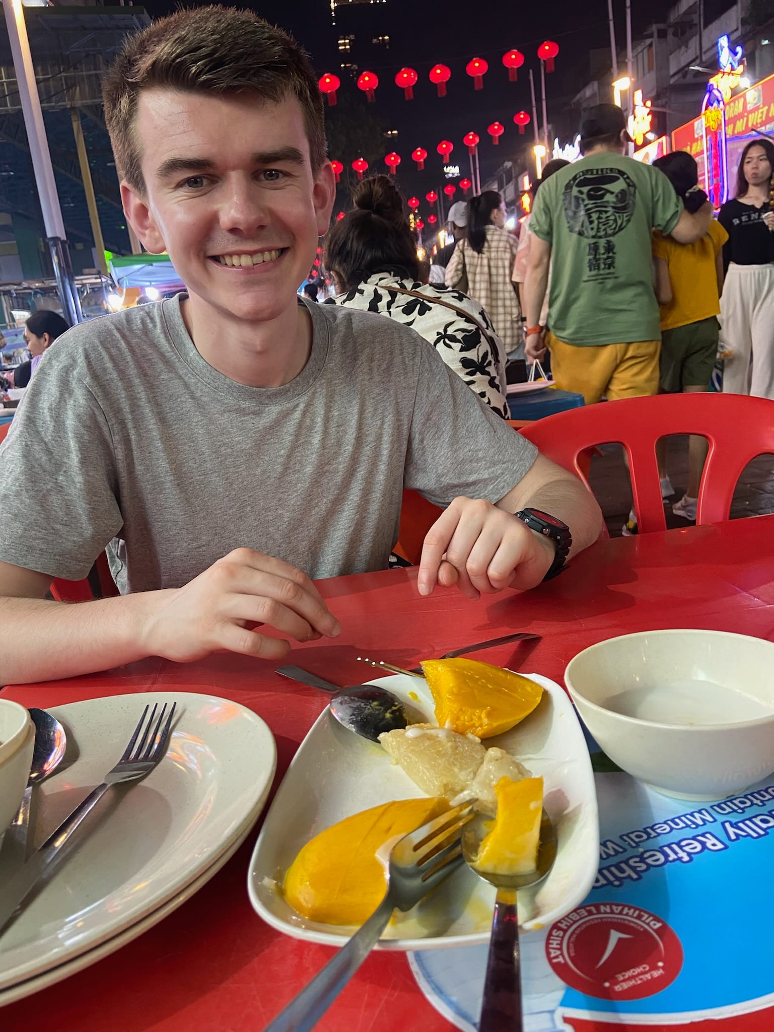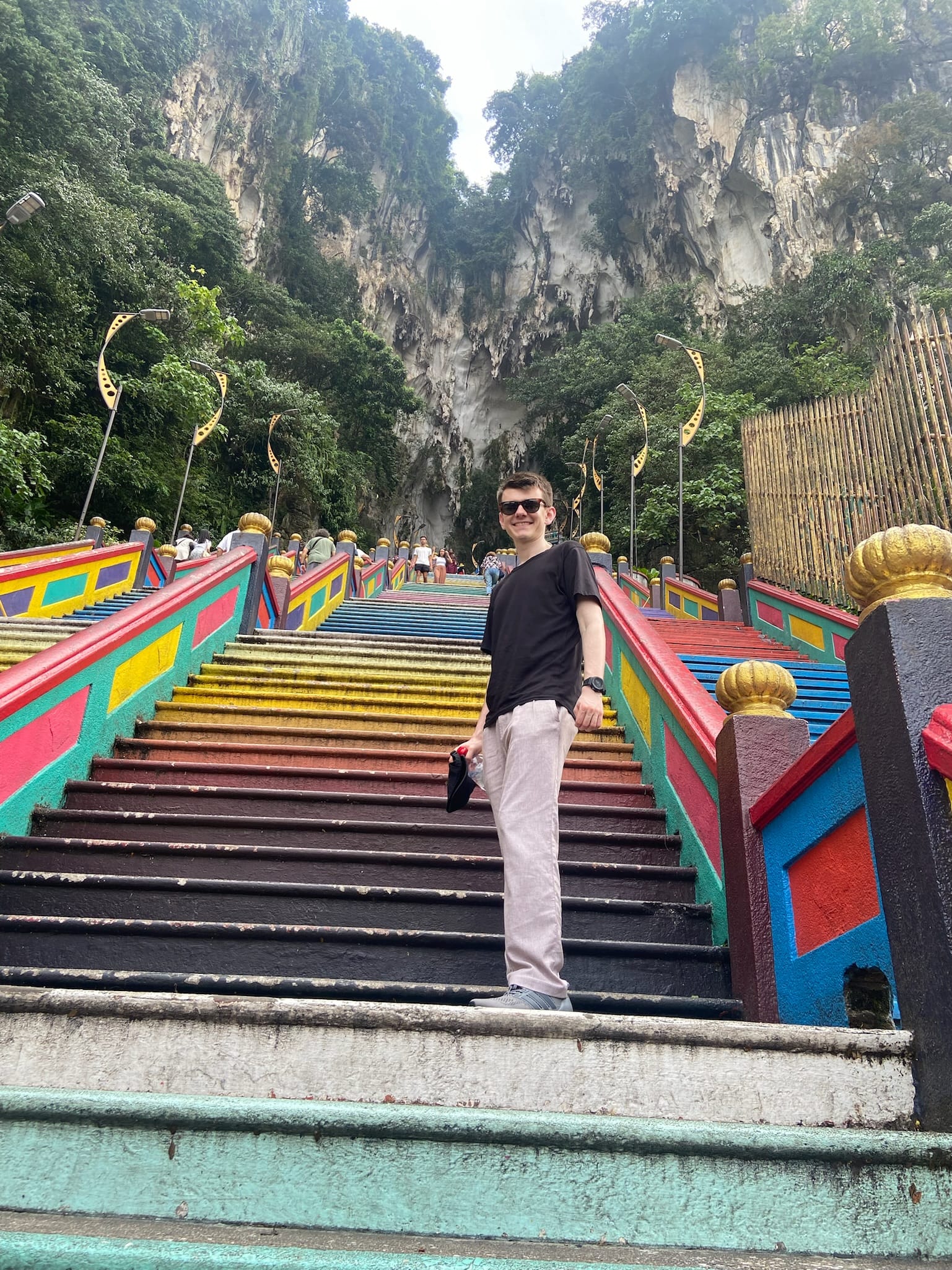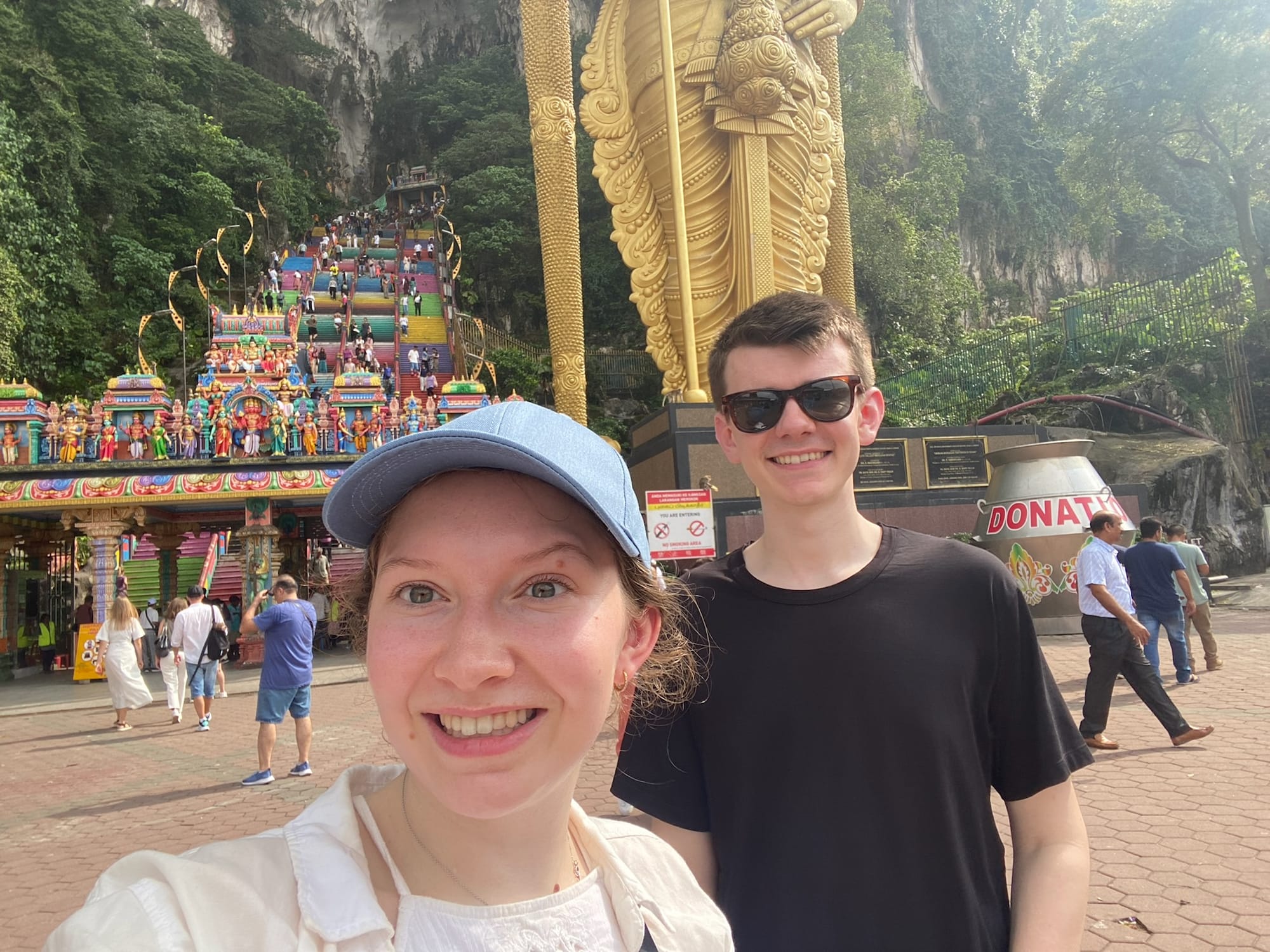 Today we were up and out by 7am so we could reach the Batu Caves before the crowds. After some interesting (incorrect) train timetables and a McDonalds Nasi Lemak, we arrived to a beautiful temple and a lot of pigeons and monkeys. We felt extremely lucky to be finally here after seeing so many photos, and it really lived up to the hype! After a few hours, we got a train and Grab (taxi) to Thean Hou Temple, celebrating Buddhism, Confucianism and Taoism. Having recently been Chinese New Year, the decorations were still up from the celebrations and we could only imagine how bustling it would have been last week. We then continued our Chinese adventure into Chinatown, sharing a Grab with some other backpackers back into the city. Bustling streets of fake designer goods, plastic tat and food stalls. We grabbed lunch from a hawker and when looking for a loo in a mall, stumbled across loud drums and a dragon parade! Dan found a restaurant with amazing beef noodle soup so we had a bowl of that and headed back for a rest and nighttime swim. At around 9pm we headed back out for some dinner - chicken satay with rice and mango sticky rice from two stalls on Jalan Alor - and to see the Petronas Towers at night. We have loved Kuala Lumpur, would really recommend it as a stopover to anyone visiting Southeast Asia and can't wait to visit again one day! Next stop, Singapore...