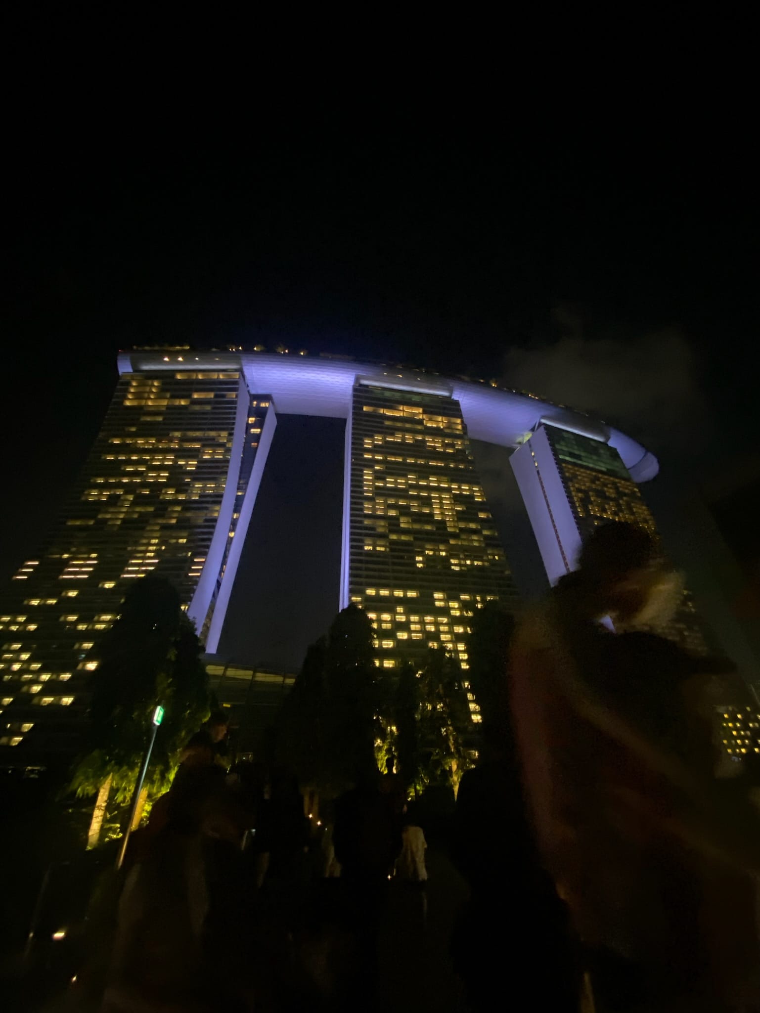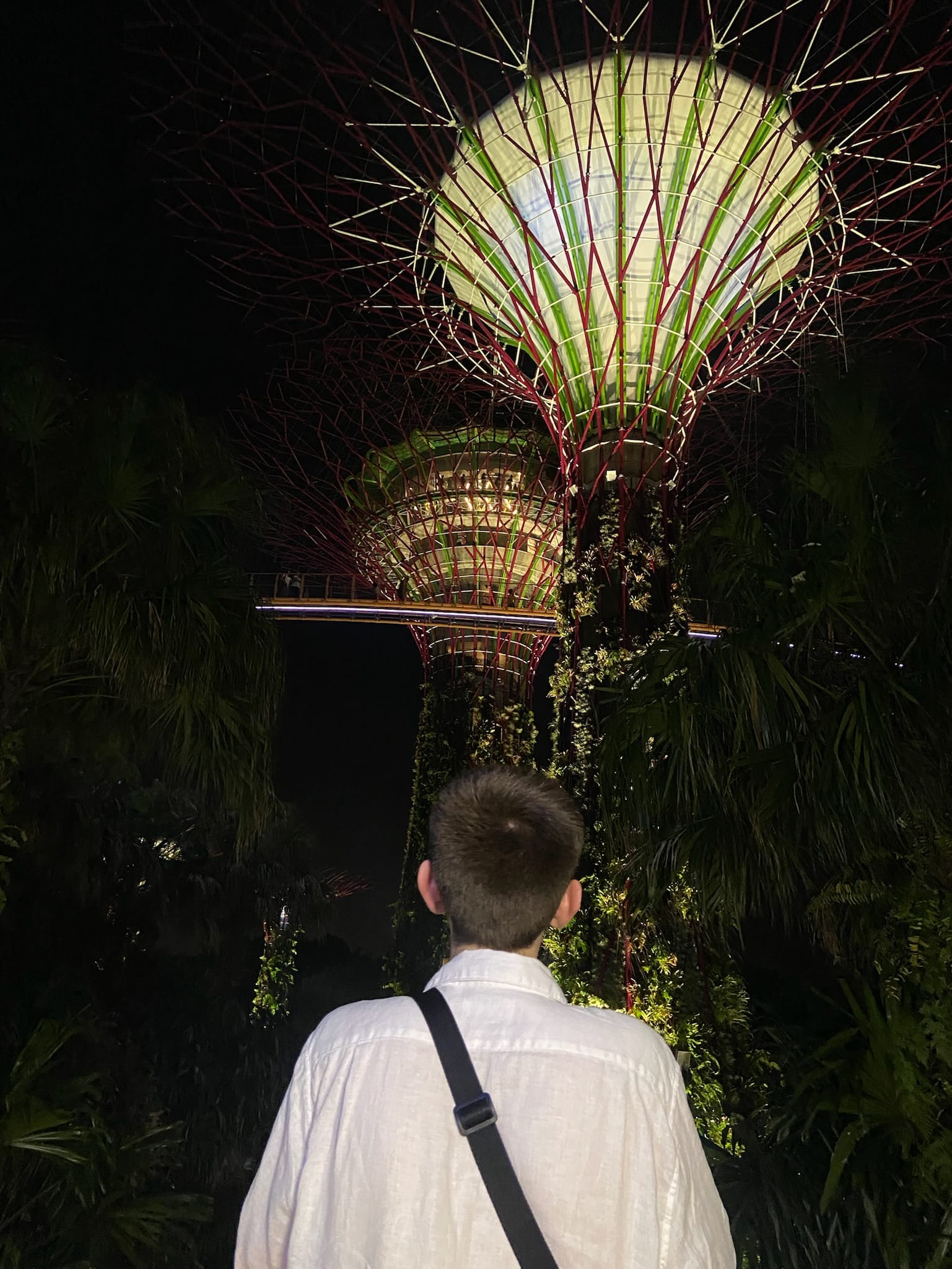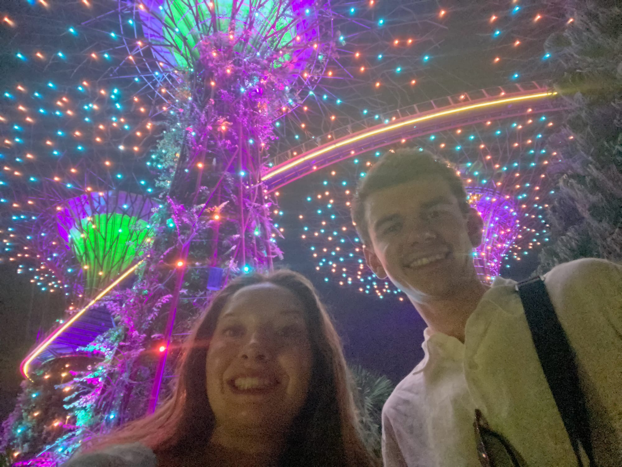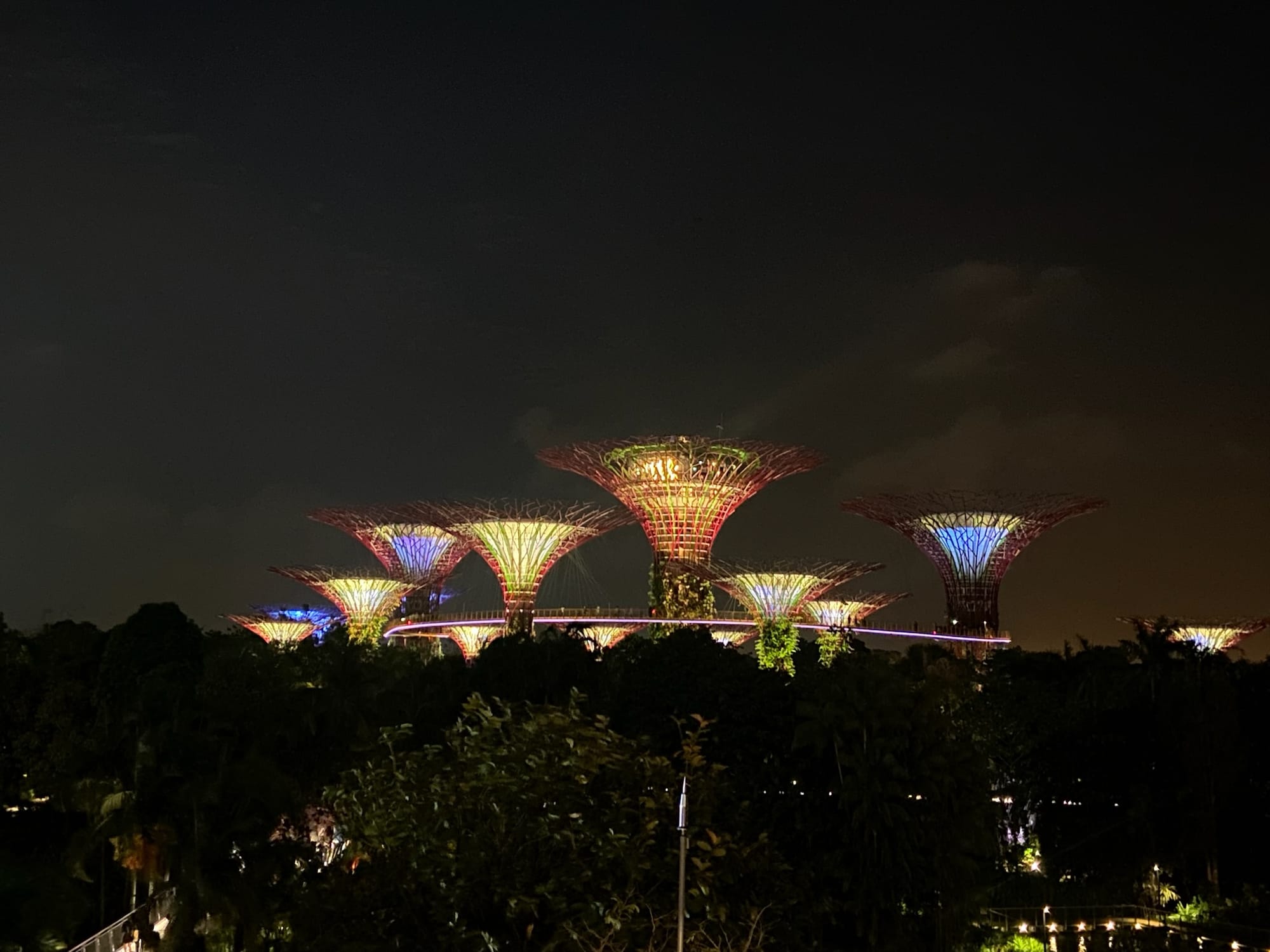 The Gardens by the Bay light show was incredible! We lay down on a bench to watch at the base of one of the lit up trees!