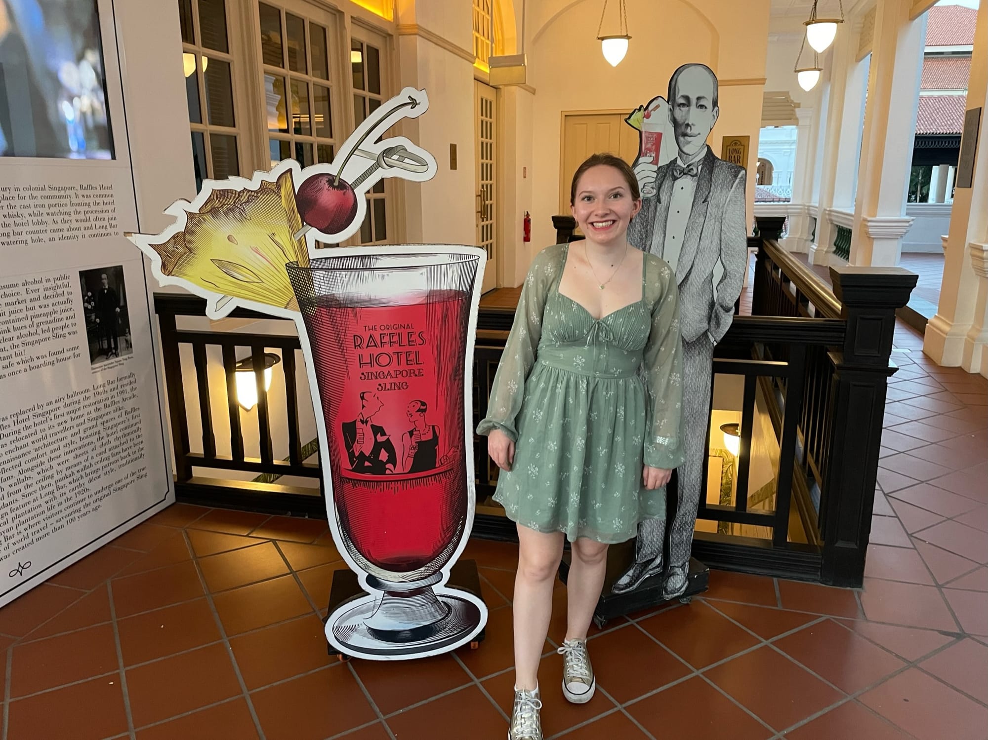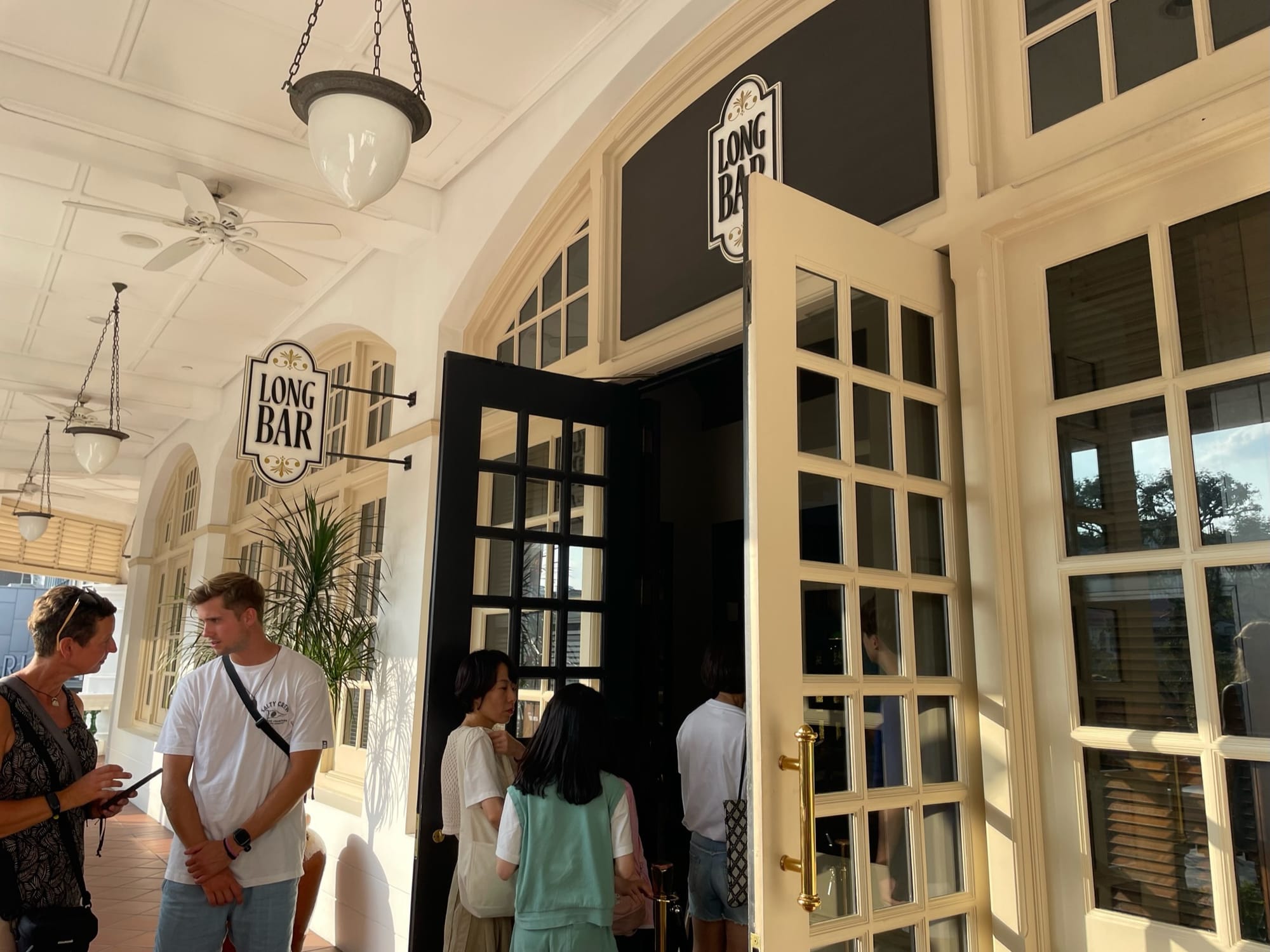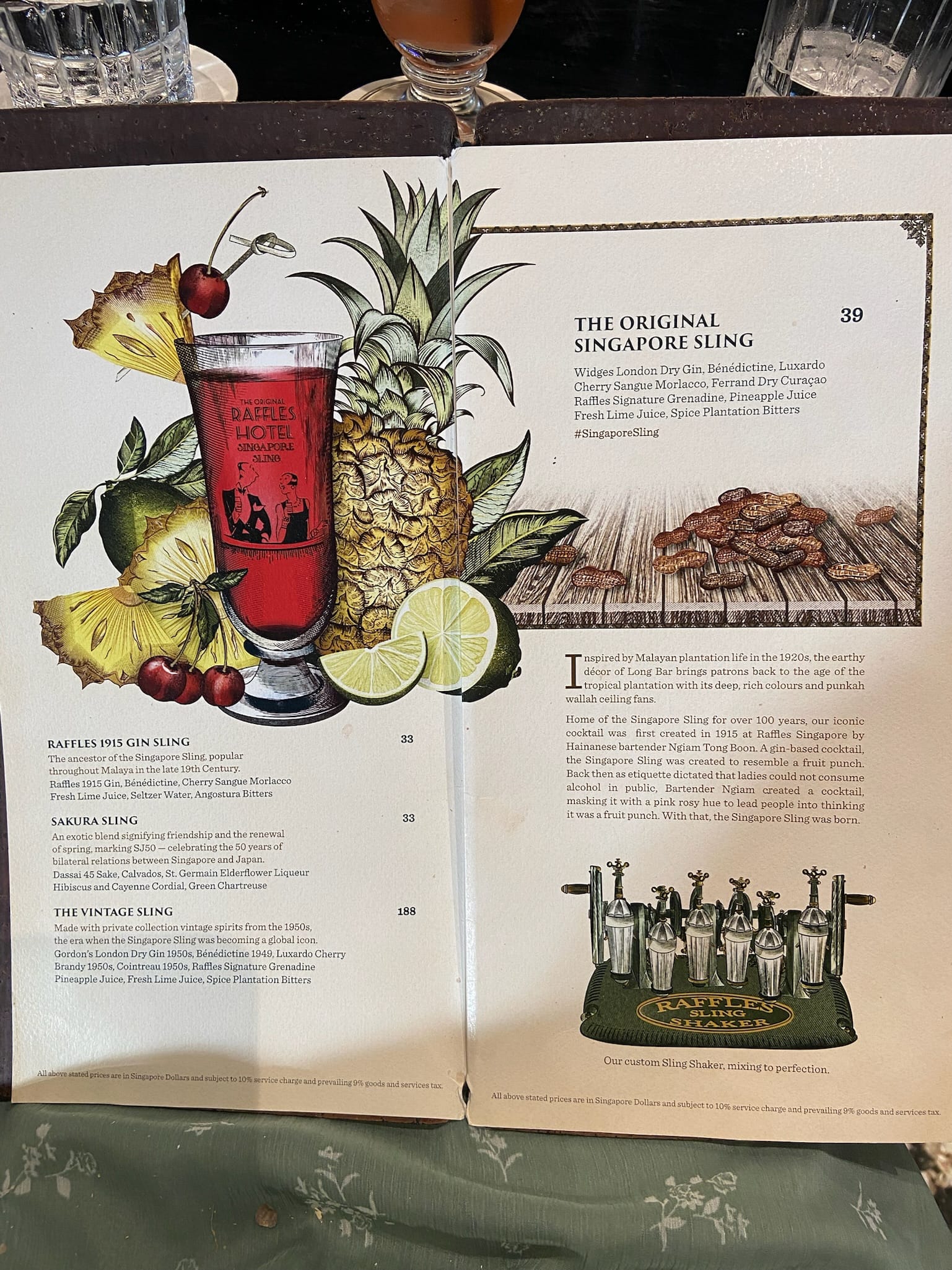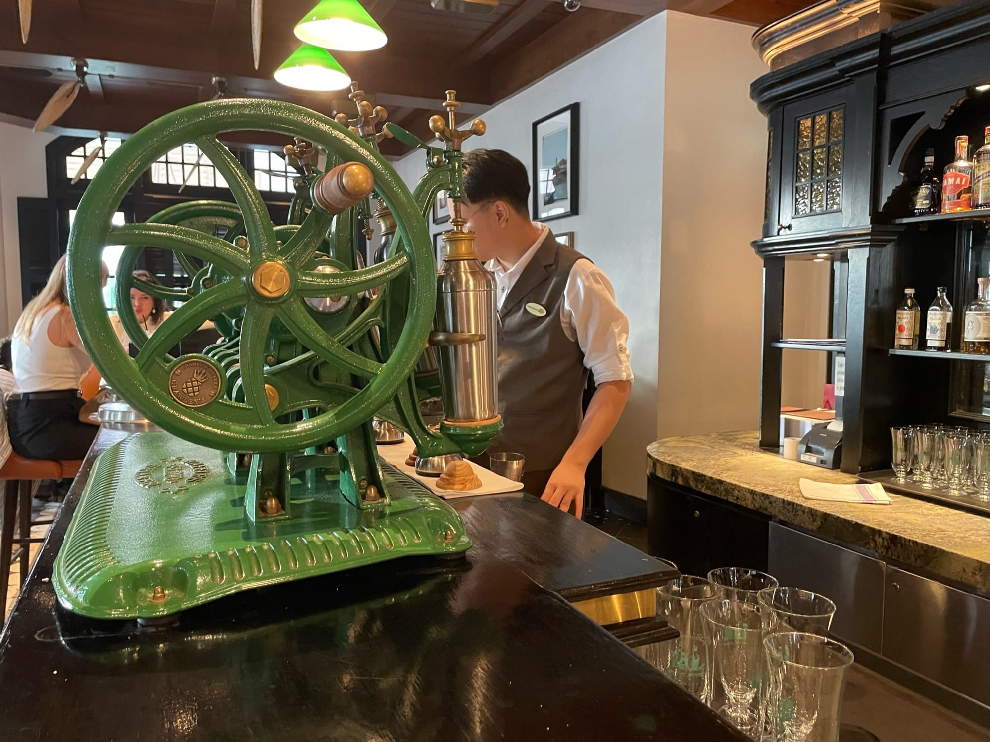 You have to have a Singapore Sling when at Raffles! It was delicious and the peanuts went down a treat too. I'm not sure everyone eats quite as many as we did though! The green thing with the wheel is attached to cocktail shakers to make Singapore Slings - only for deoration now though as they are all by hand!