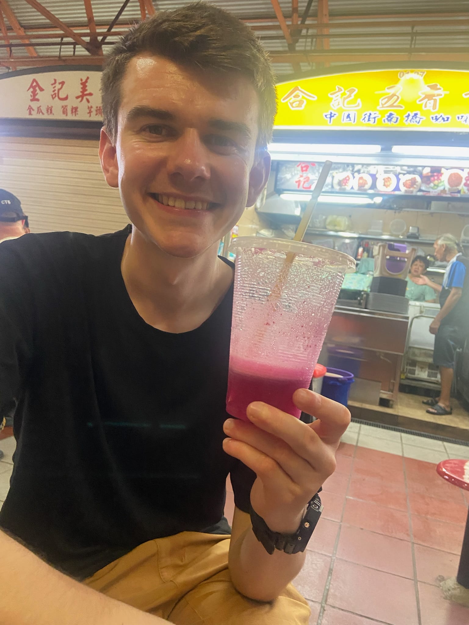 Dinner: prawn summer rolls, strawberry and dragonfruit smoothie and pad see ew (this had more black pepper than we are used to at home). We also had some Chinese dumplings which we forgot to take a photo of and our eyes were bigger than our bellies!