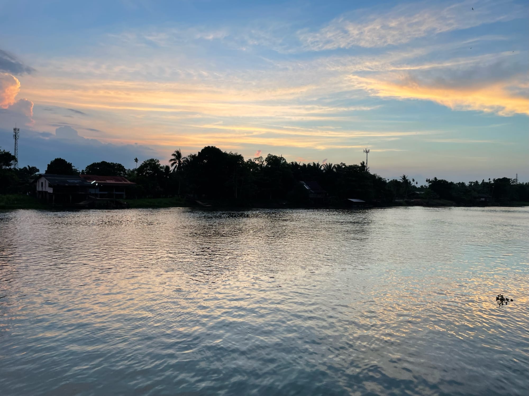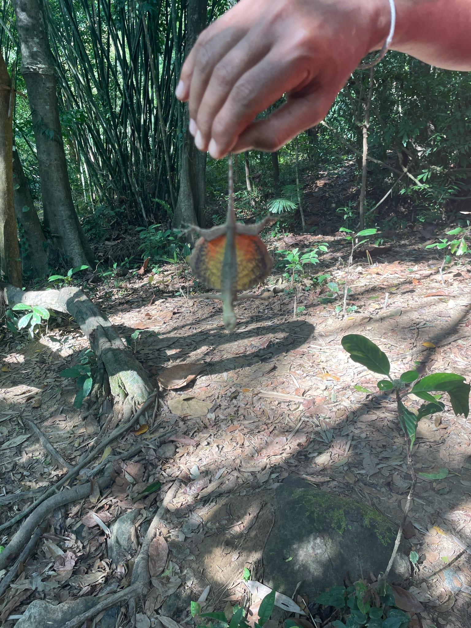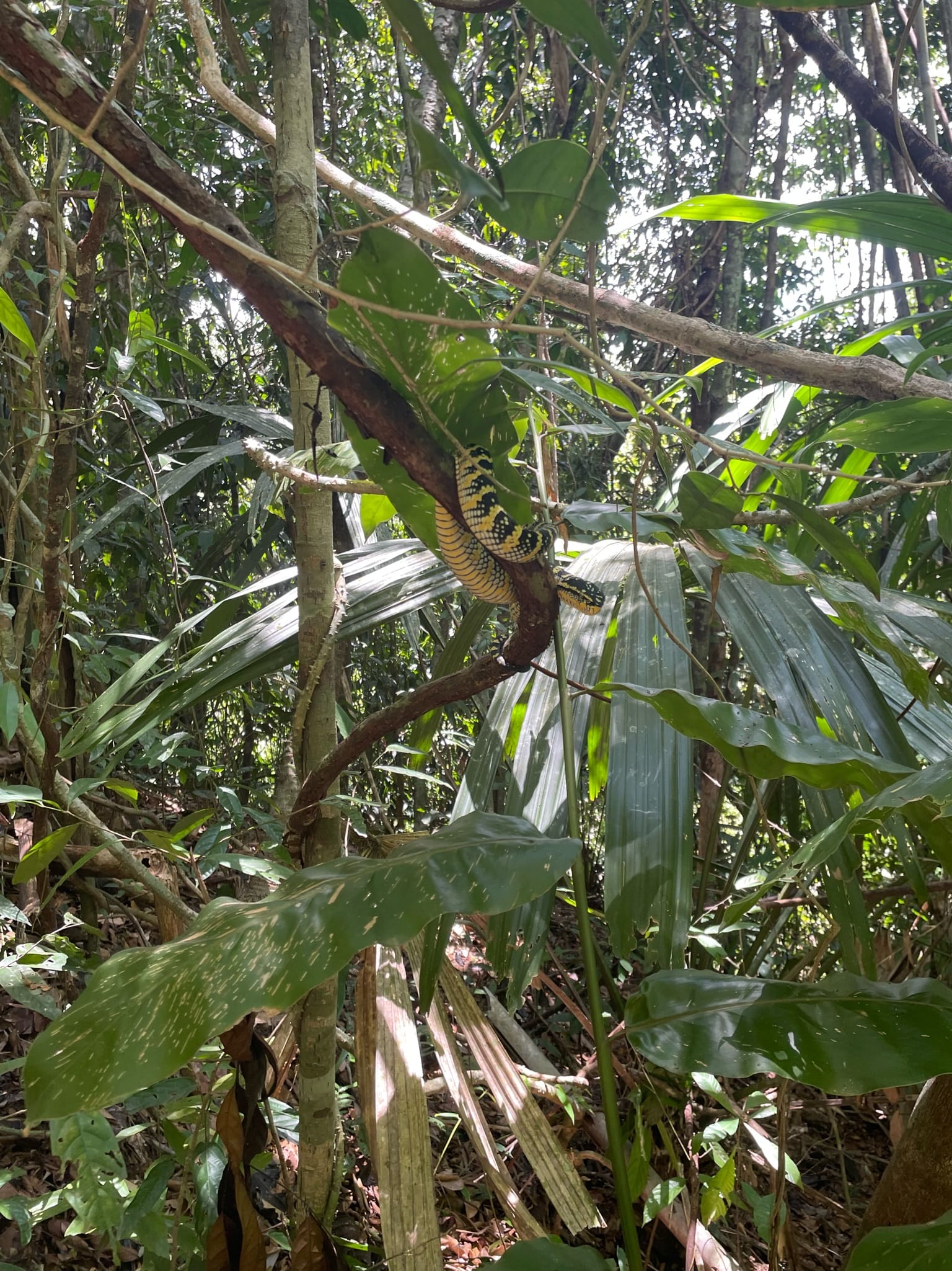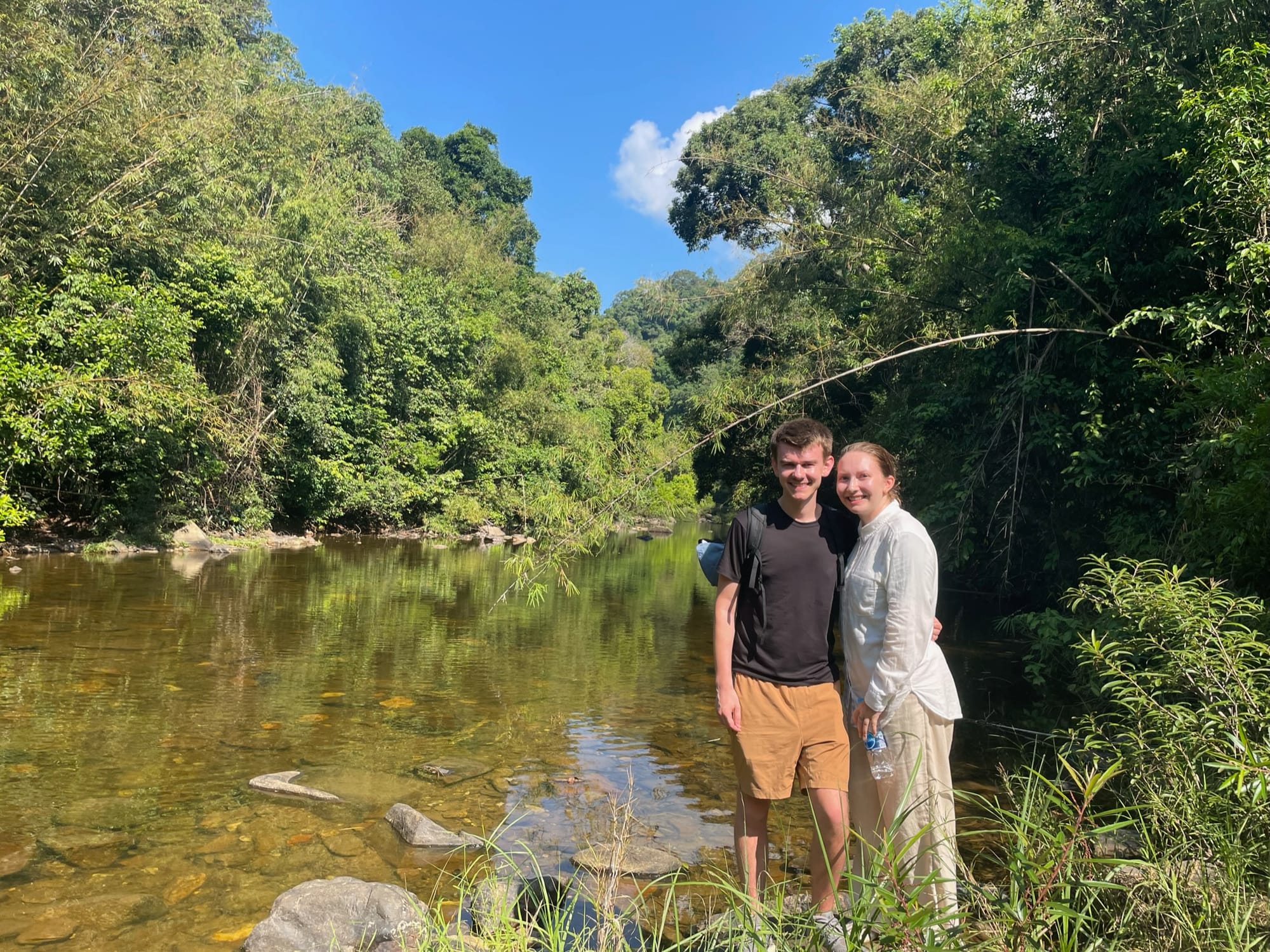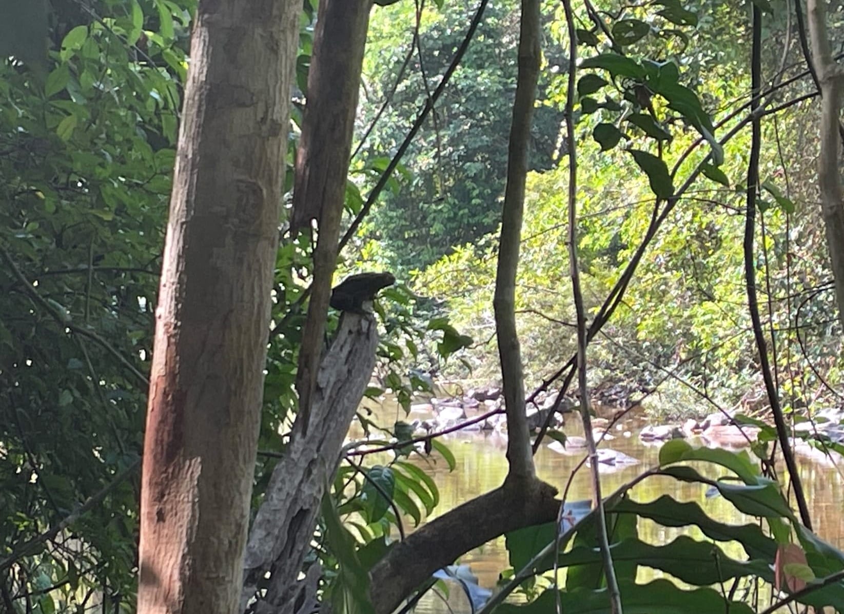 We were up and had breakfast early ready for our half-day hike around the jungle! The sounds and sights were very different to the day before, though the presence of elephants was still obvious, them having visited just the night before. The animal highlights were lizards, butterflies, giant tadpoles, fish, frogs, a snake and a pufferfish (which the guide enticed out of the water and neither of us realised had such sharp painful teeth). At one point, the guide quickly hugged a tree and we were quite confused until he came back with a lizard which uses webbed skin between its legs to glide between the trees - we quickly realised this was the same kind of flying lizard that we heard splatting on the floor the previous night.