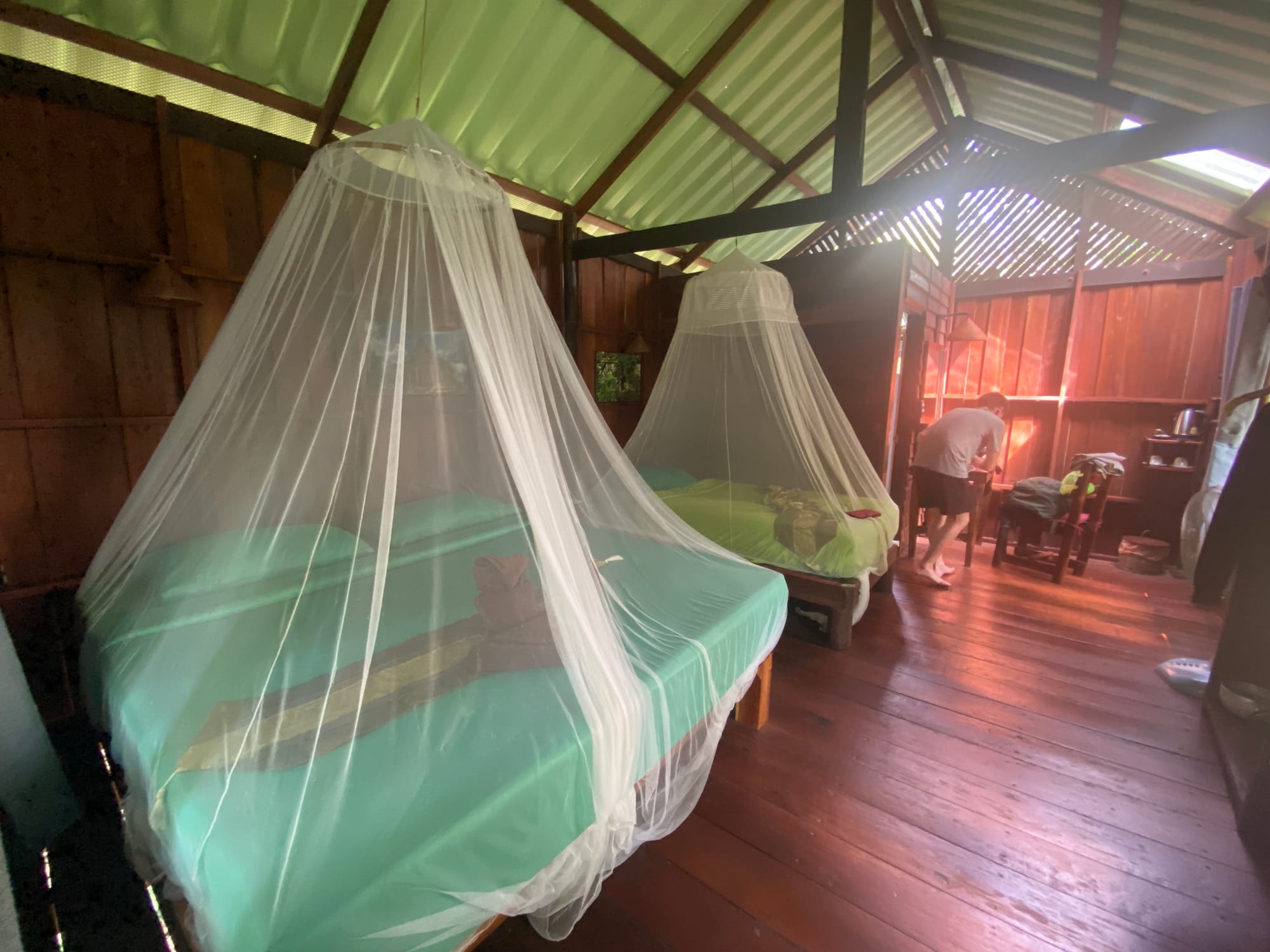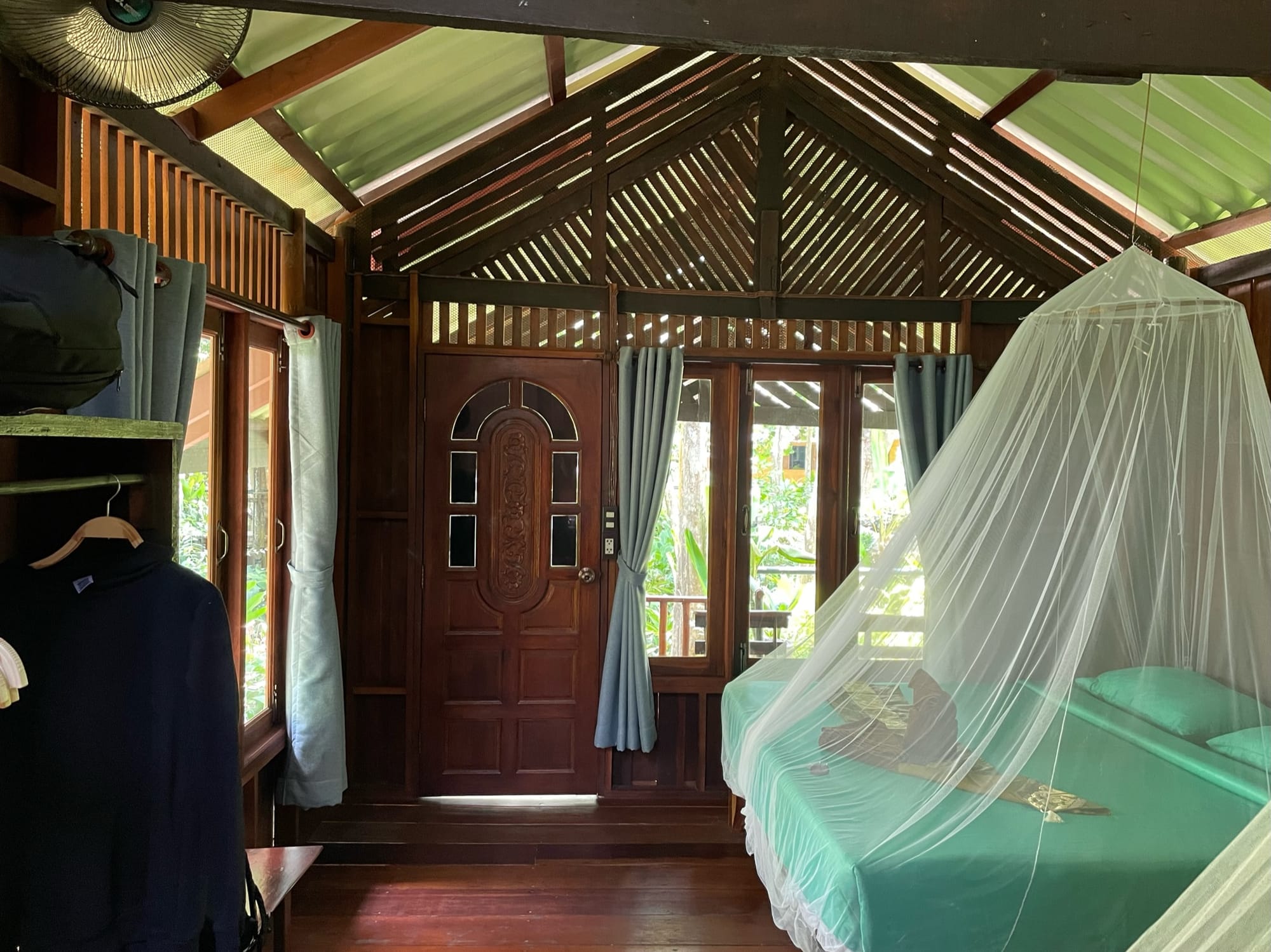 Our next night was going to be at Riverside Cottages and had already booked on to a few excursions with them. We phone them up and they kindly offered to pick us up from the other hotel for free. We checked in and shared a penang curry and 2 portions of rice for lunch. The room was quite different to the previous hotel, with lots of gaps for ‘friends’ to join us but it was cozy none the less.