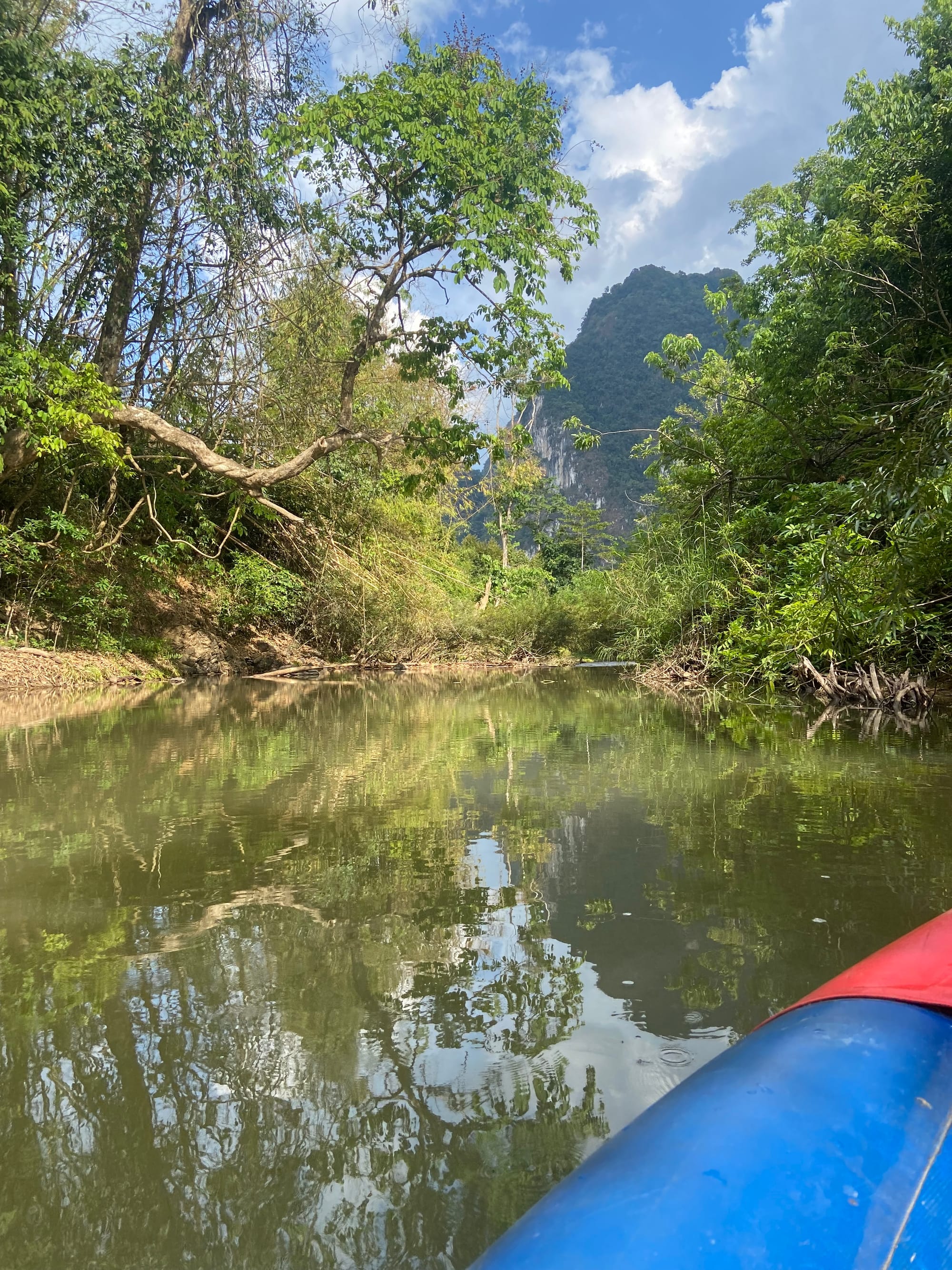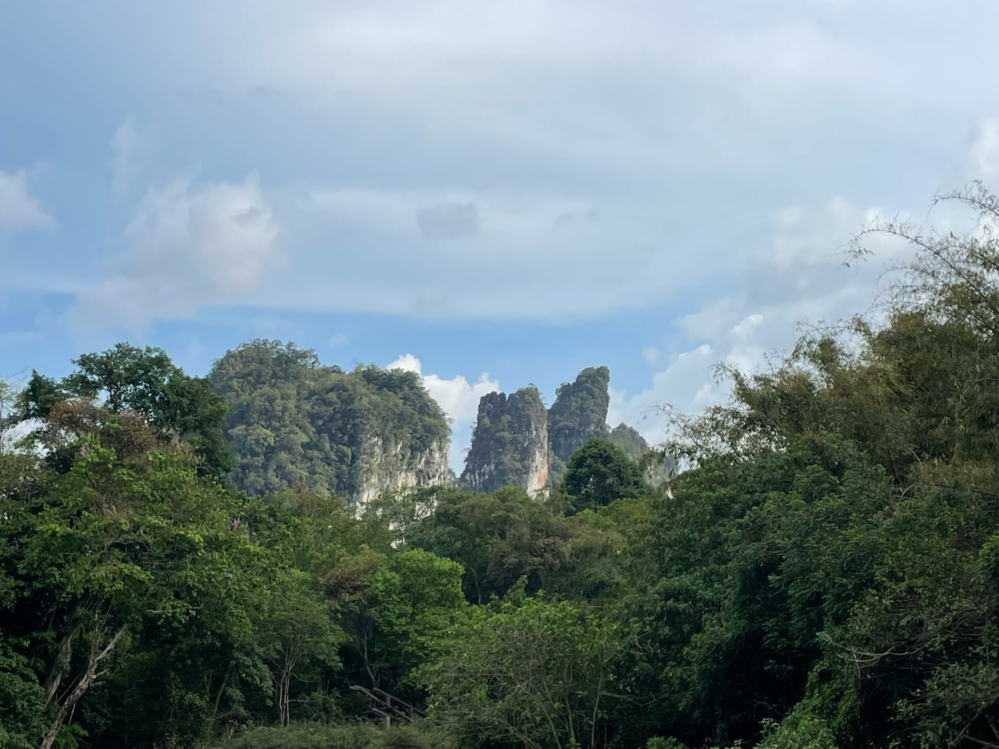 We arrived in Khao Sok after a long journey in a minivan, which unexpectedly stopped for 2 hours and changed vans. This did give us an opportunity to see then Gloucester services of Thailand (a farm shop services which we think only coach tours probably stop at). We arrived on the outskirts of the town and could soon see why we were told that this was a ‘must-do’, the scenery was beautiful and we weren’t even in the park yet! We checked into our hotel (Nung House) and our room was more modern that we were expecting, with a good aircon system! We dropped our bags and headed for something to eat after the long journey - mango sticky rice! We also booked on to a night safari which the hotel recommended for that night, as well as yoga in the jungle for the following morning.