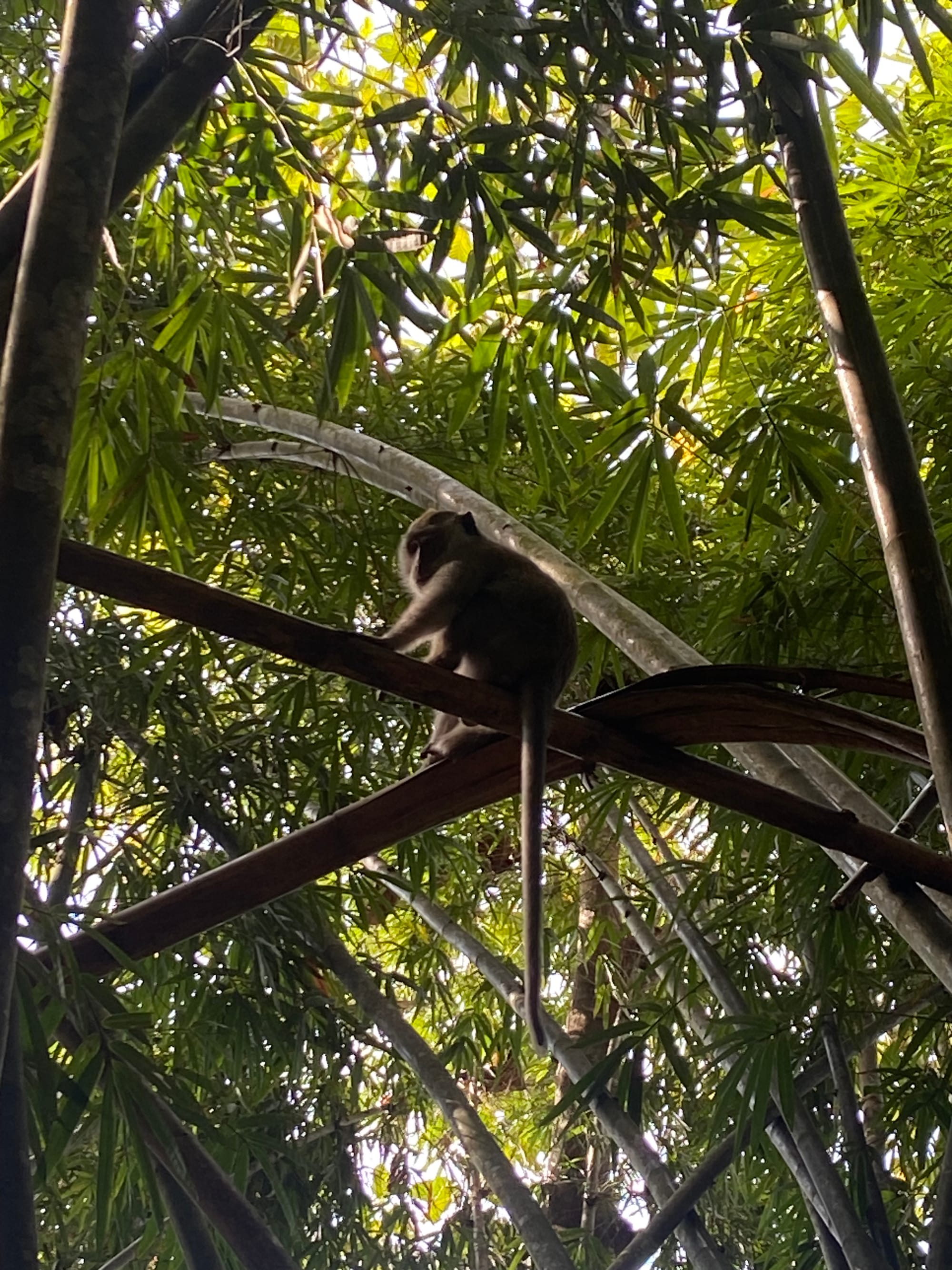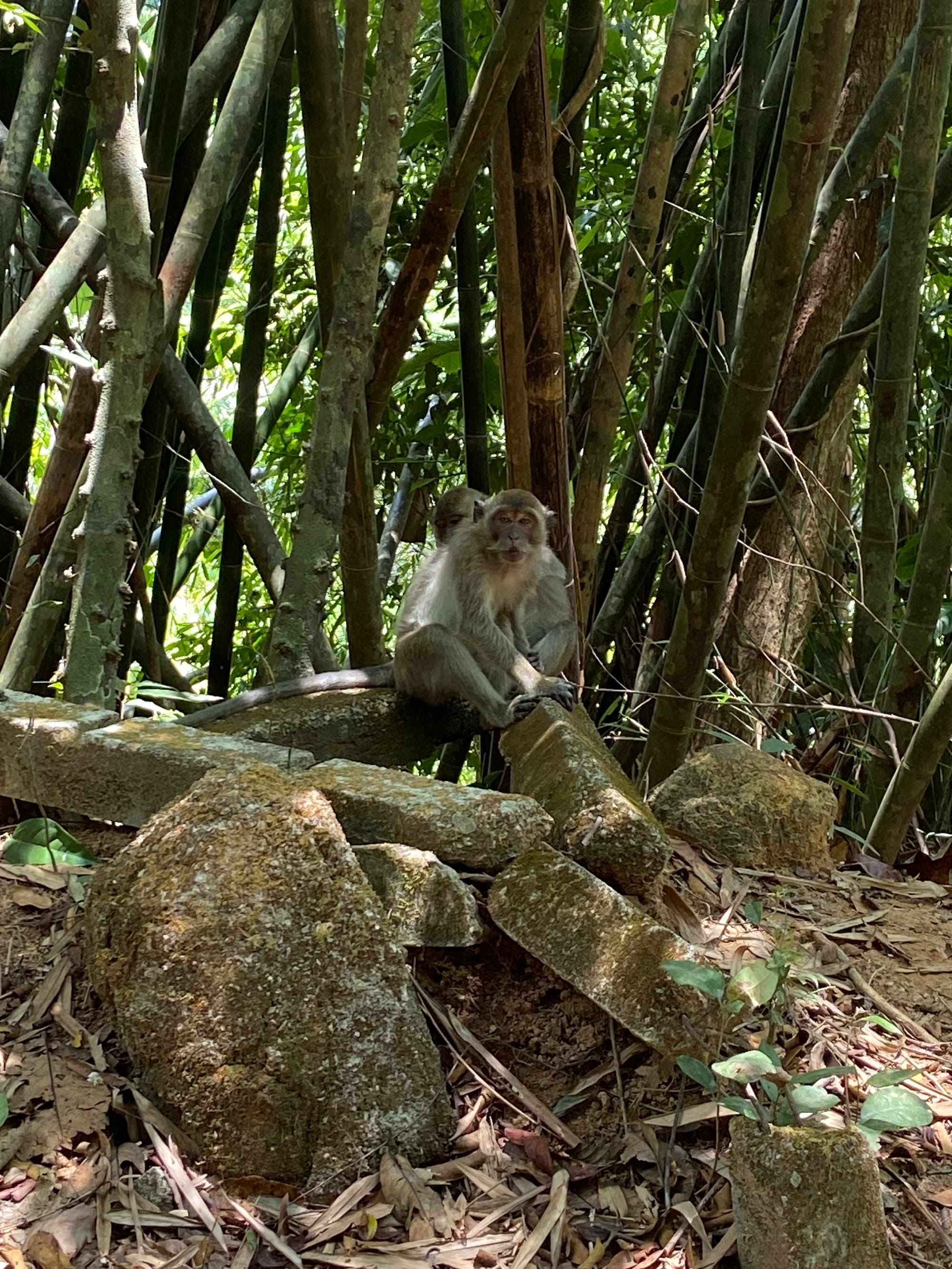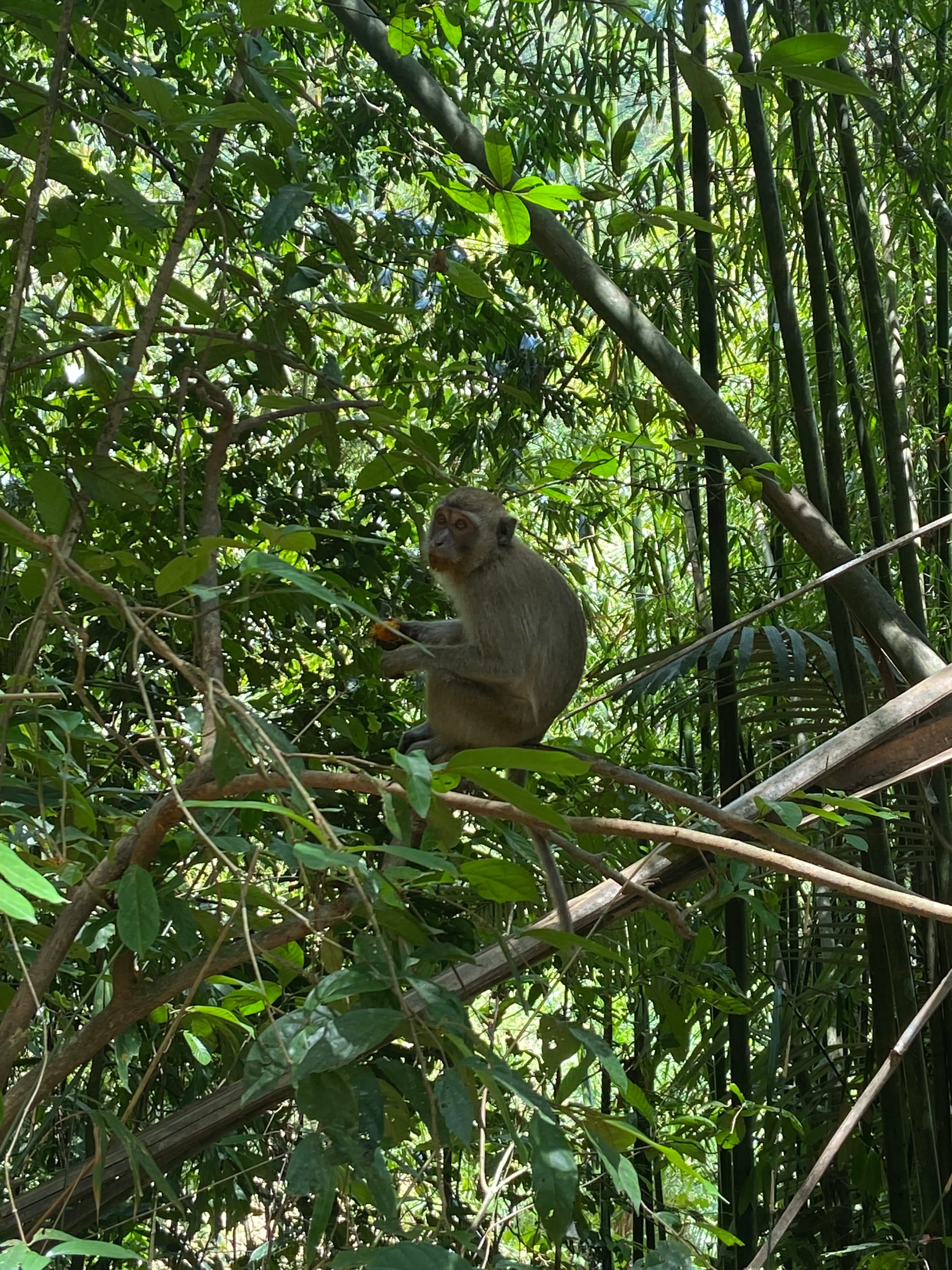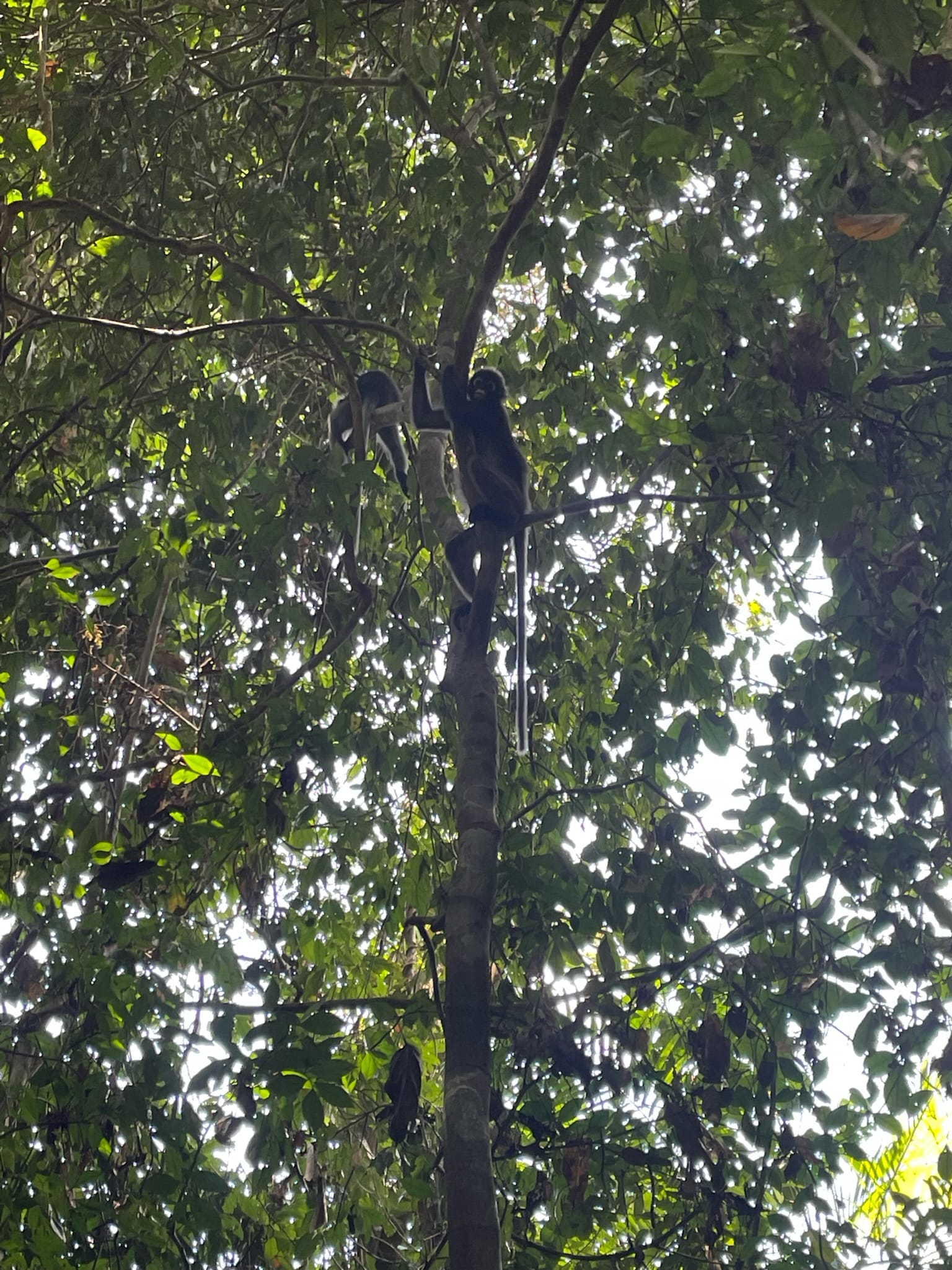 We also saw three different sets of monkeys this time, stump-tailed macaque, long-tail macaque and langurs. We had to keep pinching ourselves that what we were seeing was in the wild, not in a zoo like we had seen in Singapore! In the daytime, you could also really appreciate the scenery of the park, as we hiked through the jungle and across the river. The trees were so tall that you could barely see the tops of them!