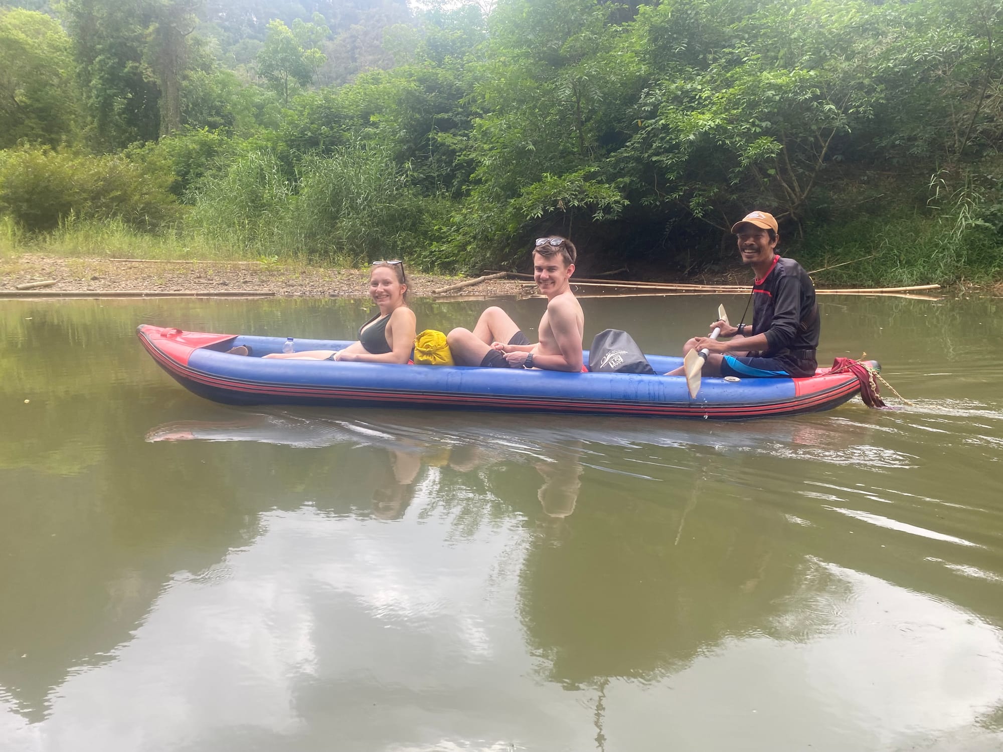 We stopped part way for a dip in the river, but the prospect of fish nibbling at our toes meant we didn't stay too long. Our guide then showcased what he had been working on whilst we were swimming - rings made from woven bamboo which were surprisingly strong! We continued down the river to another stop where we had coffee and hot chocolate from handmade bamboo cups, with water which was boiled in the trunk of a bamboo plant on a fire the guides had made themselves - very impressive! Our tour carried on for another short while until we reached the bank where the jeep picked us up to take us back to the hotel.