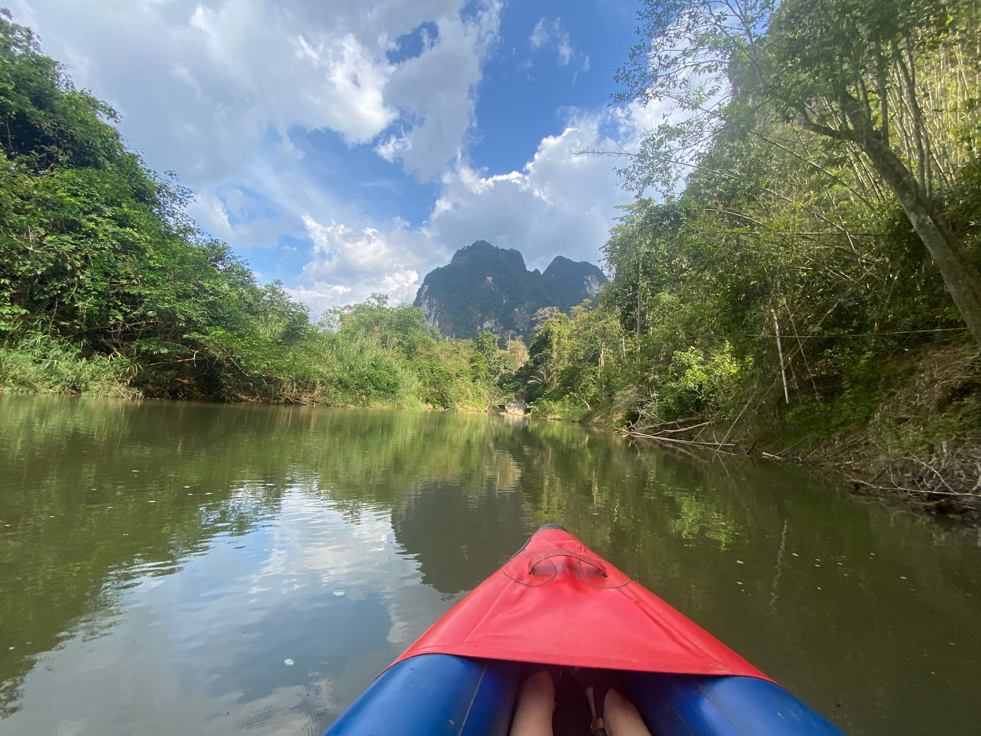 After getting changed, at 3pm we met our guide at reception for our canoe tour. We had expected to be rowing ourselves but had a guide to do the hard work for us! We were with a Canadian couple (who were in a separate boat with their own guide) who told us stories of their travelling, including their tour to the largest cave in Vietnam which you have to be invited to go into as only 6000 people had ever made the 5 day journey! It was very relaxing cruising along the river and the guide pointed out things along the way, including the inevitable monkeys which, at one point, we thought may join our boat!