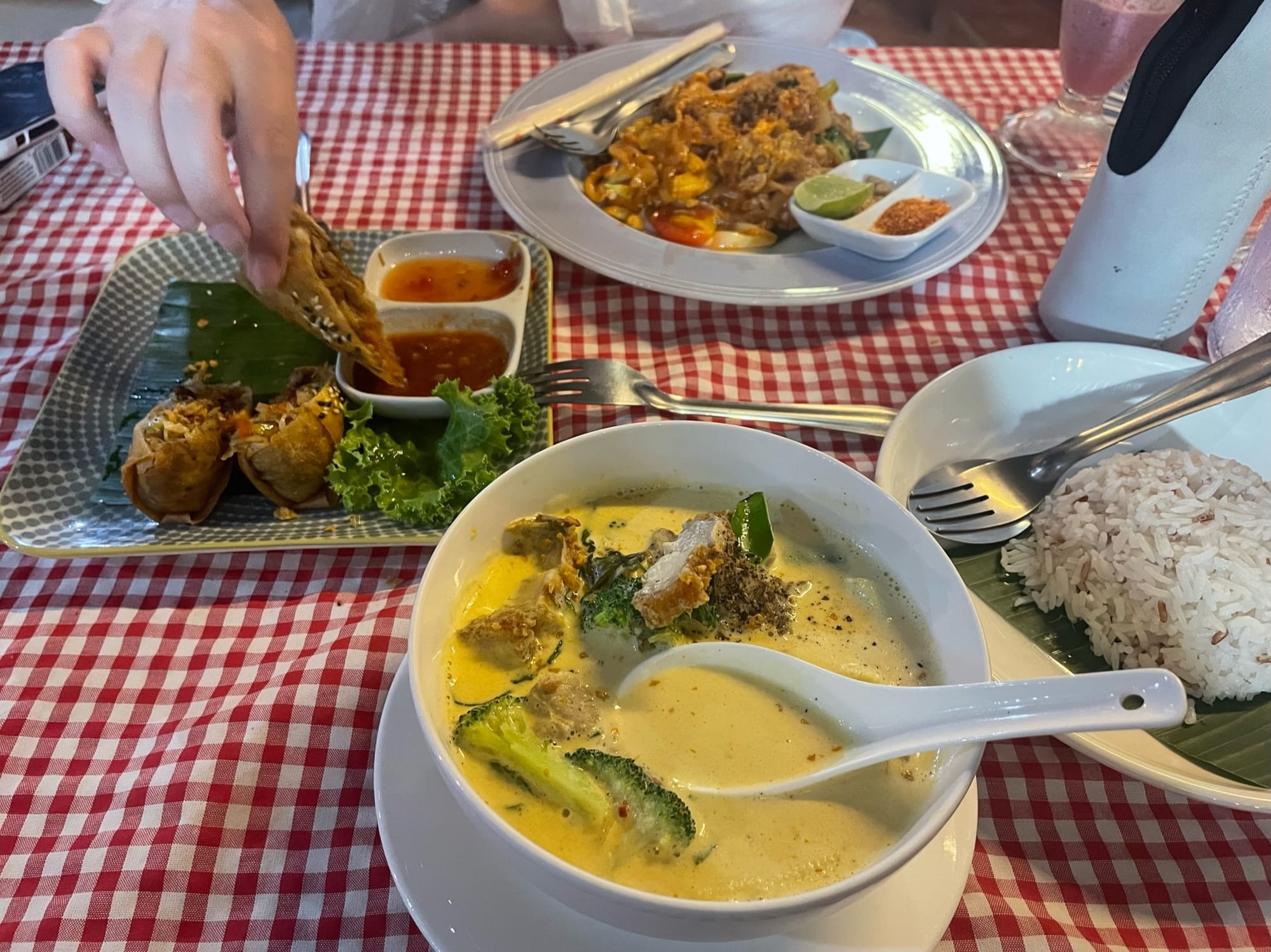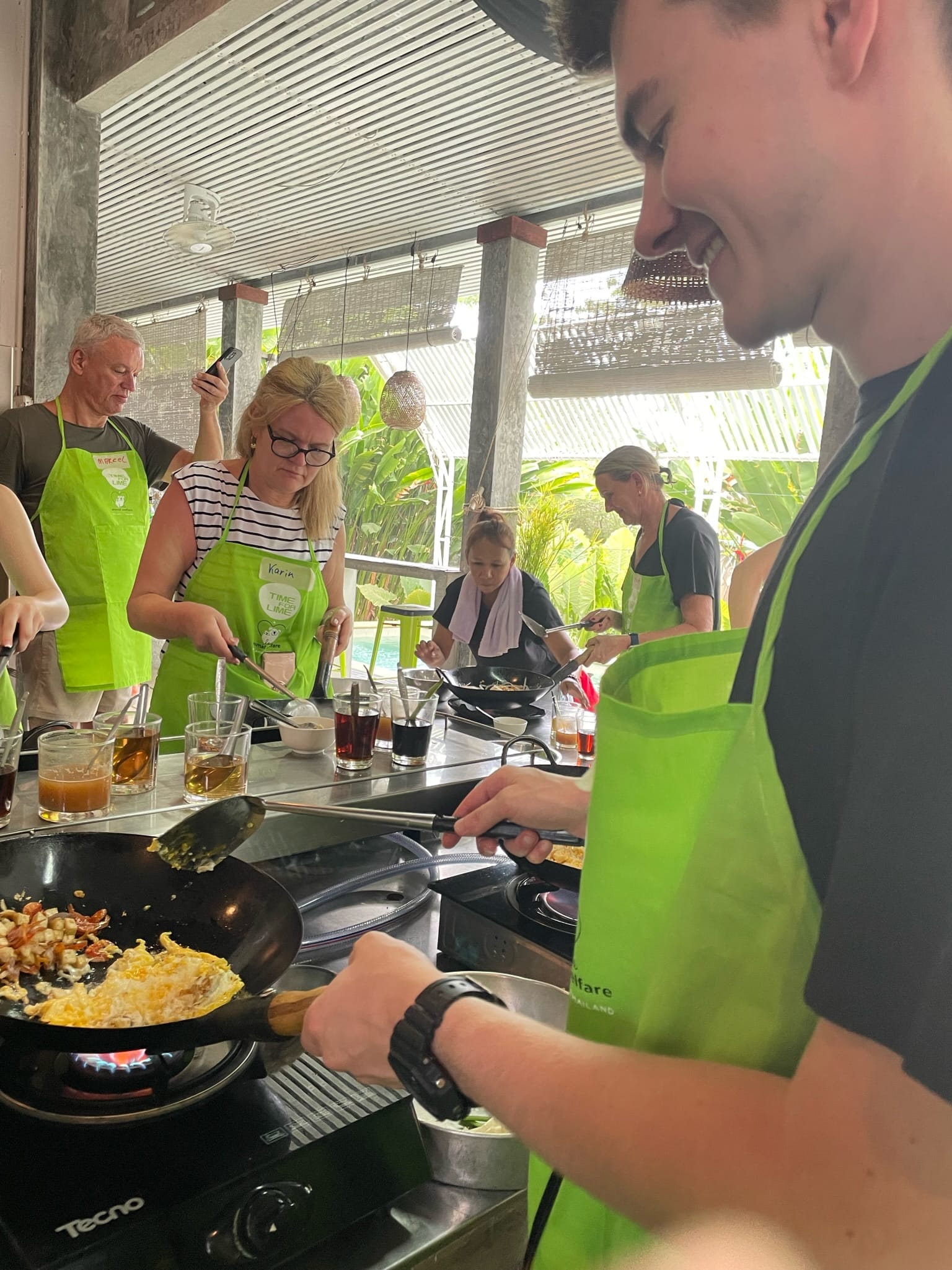 After another break we moved on to learning how to make papaya salad and Pad Thai. This was similar to how we had seen before but our pad thais at home never tasted like those at Simply Thai as it was missing pickled white radish (sweet kind)! We were also happy to hear that Time for Lime would send us all the recipes we cooked after the class, as well as the brands of ingredients which they would recommend using! After sitting with everyone to enjoy our delicious dishes, we had another break in the pool and a couple of beers.