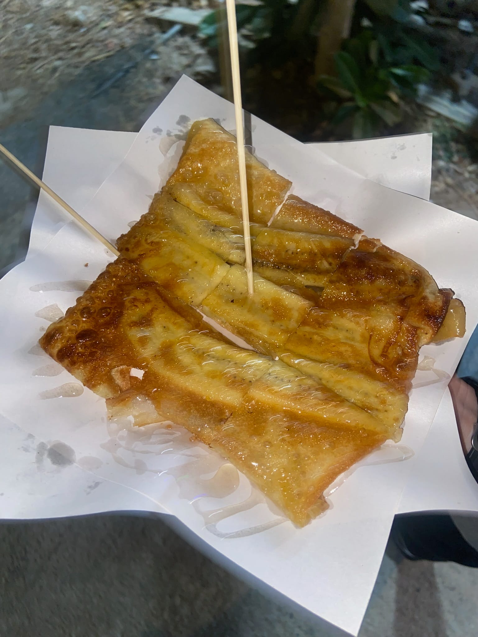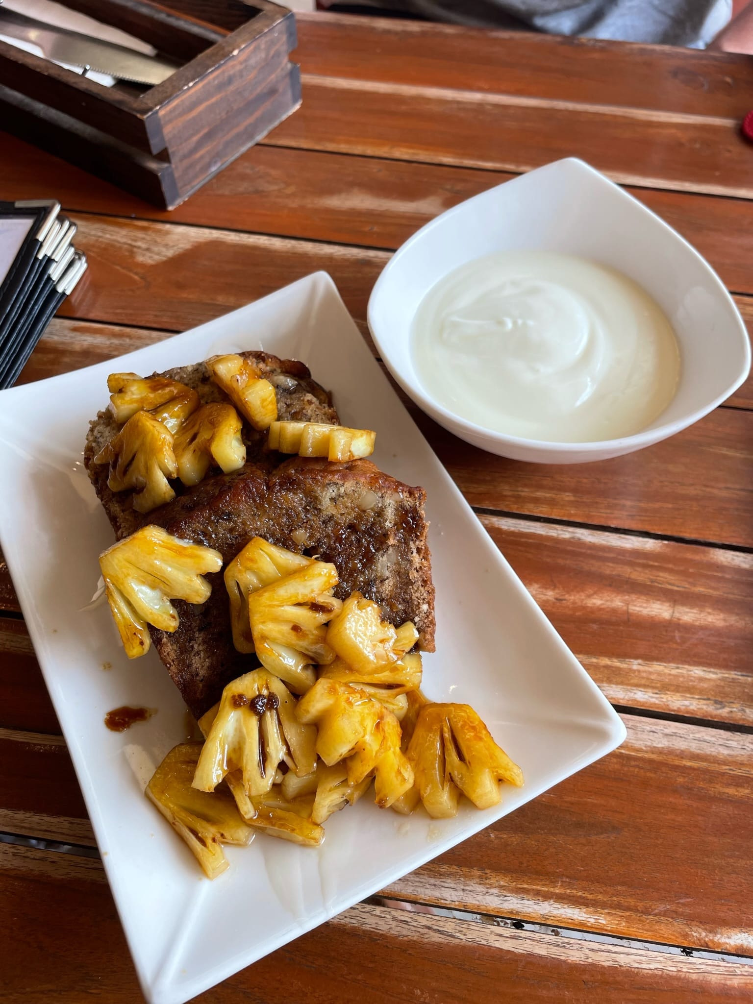 From the fruit and roti stand at the end of the road: banana roti (and many portions of mango)
