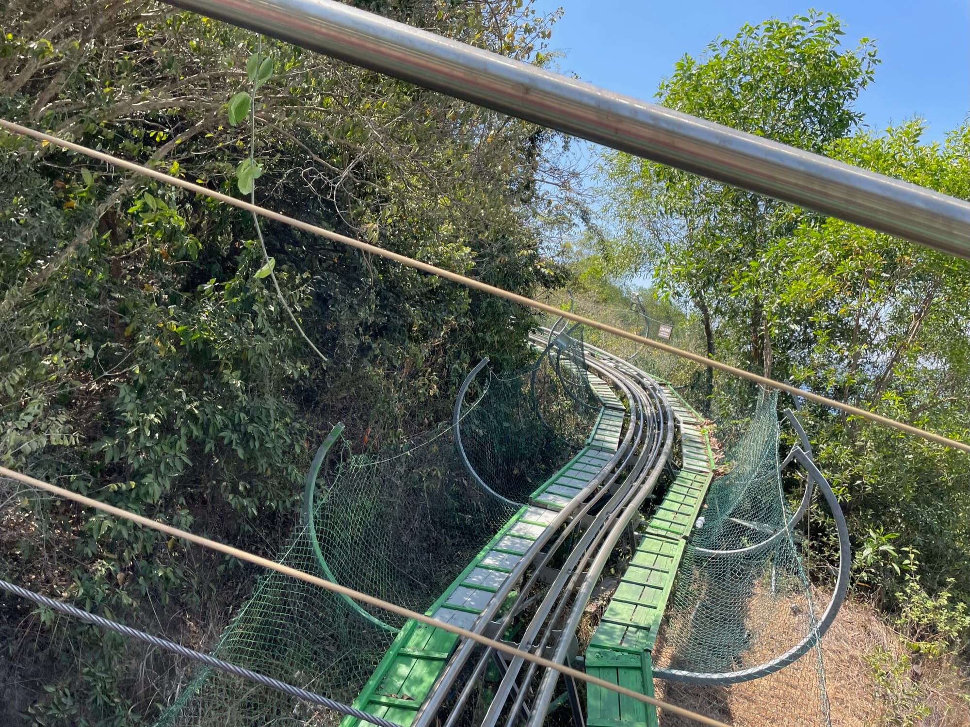 Inside the bigger resort with shops and hotels is the main theme park which was what we were there for. We'd heard that the Alpine Coaster was one of the most best rides so that was first up. It was awesome! Dan had thought it would be a bit like the toboggan in Llandudno, but it turned out to be more like a proper rollercoaster where everyone has their own individual car and you had to control the breaks around corners. It was much faster than we expected but lots of fun.