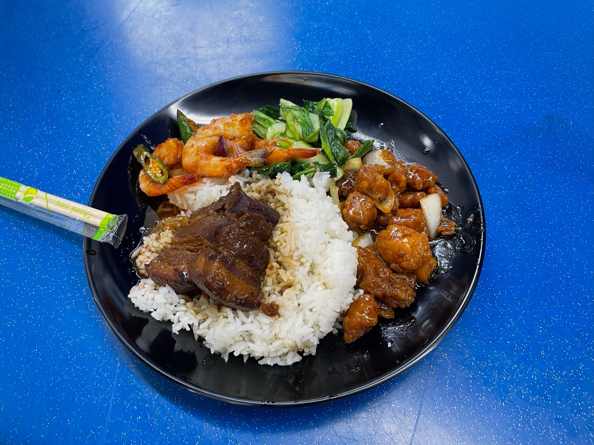 Late lunch after we checked in - rice, sweet and sour pork, braised belly pork, sambal prawns and pak choi (8.80SGD~£5). This was similar to a Chinese takeaway we would get at home.